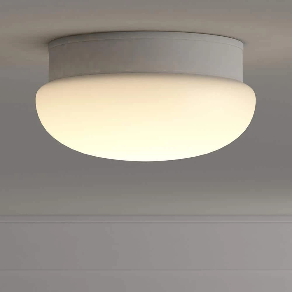 Classic globe fixture features white opal glass diffuser. Great for hallways, utility rooms or anywhere a basic light fixture is required. External shade fasteners provide quick and easy access for changing bulbs.