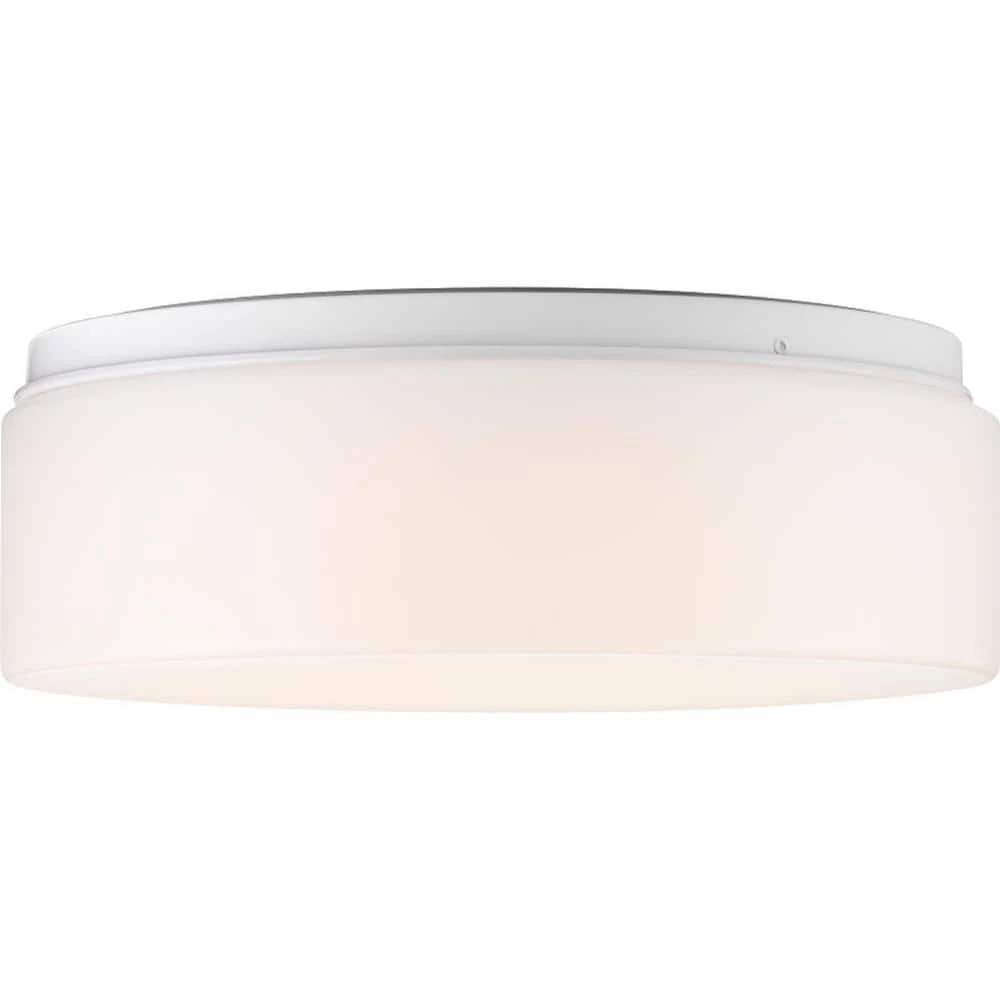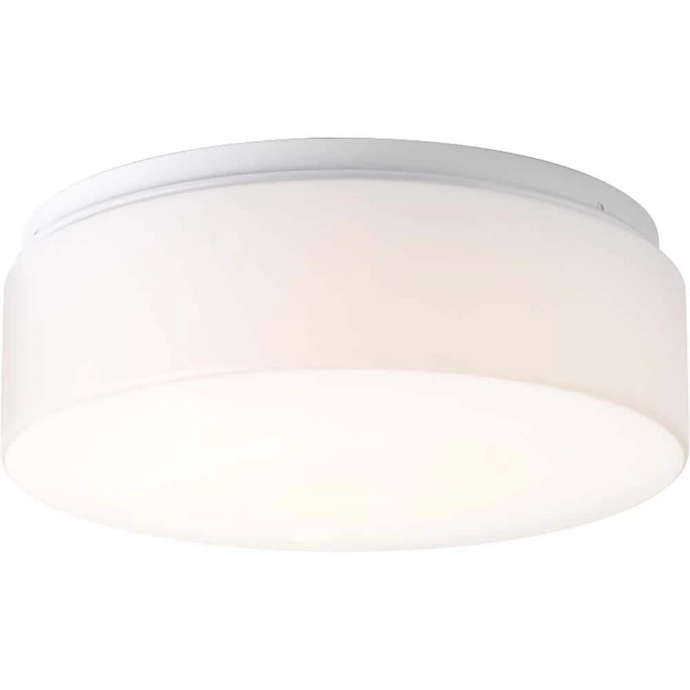 LED flush mount with white acrylic diffuser mounts to baked enamel ceiling pan. Twist on installation with a single locking thumb screw. UL approved for damp locations. Ceiling or wall mount. 1680 lumens, 80 lumens/watt, 3000K and 90CRI. ENERGY STAR and Title 24.