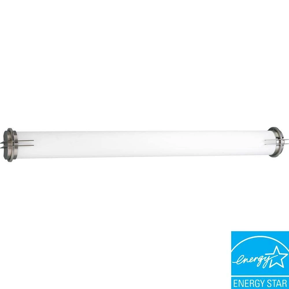 Architectural style fixture features a simple metal frame with a white acrylic diffuser. This fixture uses long-life Energy Star rated electronic ballast for superior performance and reliability.