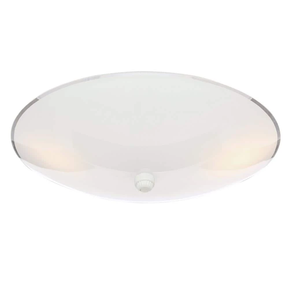 Classic dome-style fixture features frosted glass diffuser. Great for hallways, bedrooms or anywhere a basic light fixture is required. White finish.
