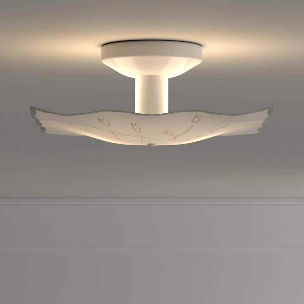 Classic dome-style fixture features frosted glass diffuser. Great for hallways, bedrooms or anywhere a basic light fixture is required. White finish.