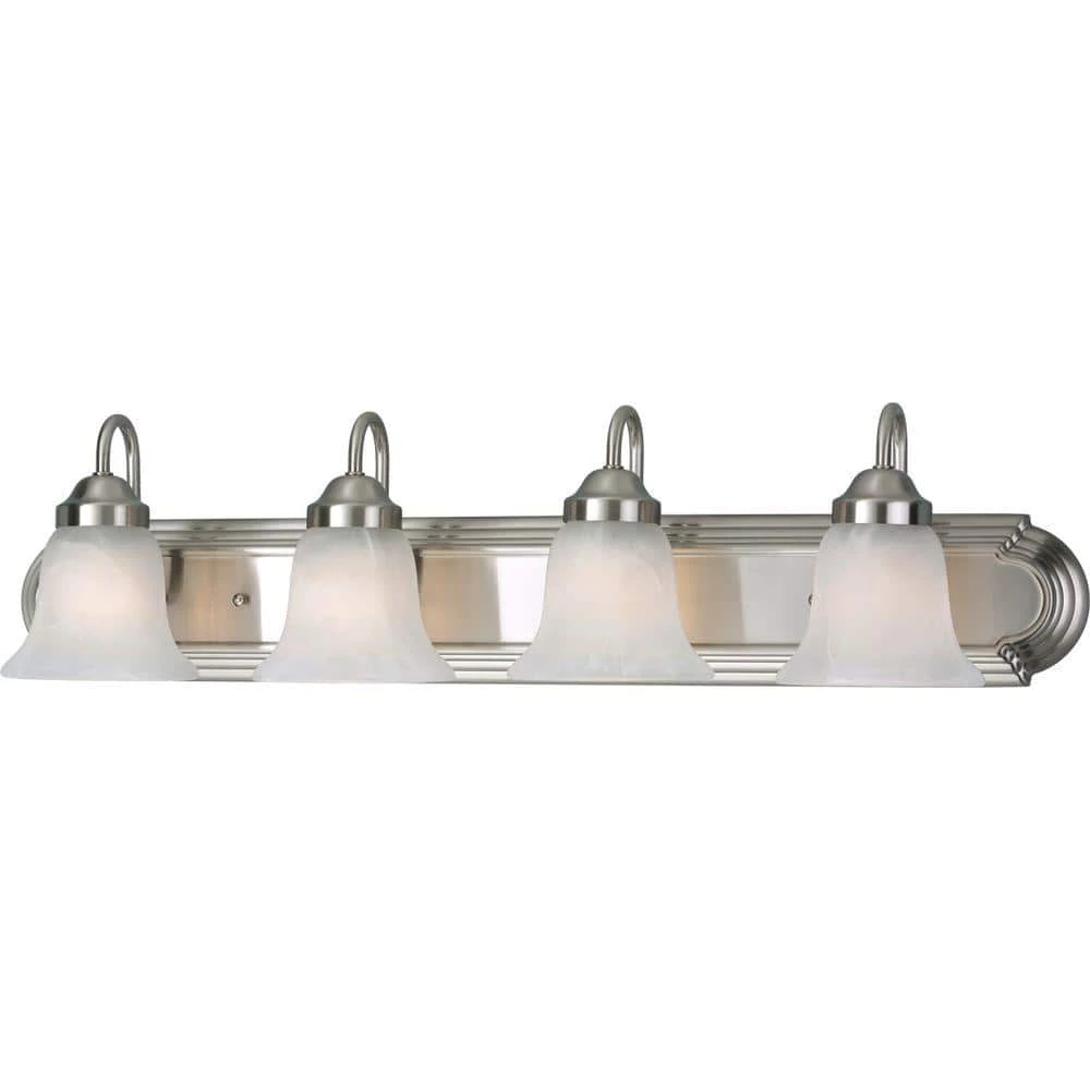 Decorative wall lighting to complement most traditional bathrooms or powder rooms. Brushed metallic finish coordinates with popular faucet and bath hardware styles.
