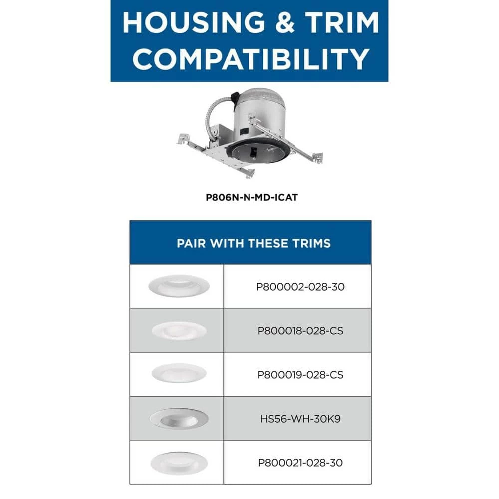 - Housing is compatible with a variety of trims and finishes to create different lighting effects or to easily match any decor
