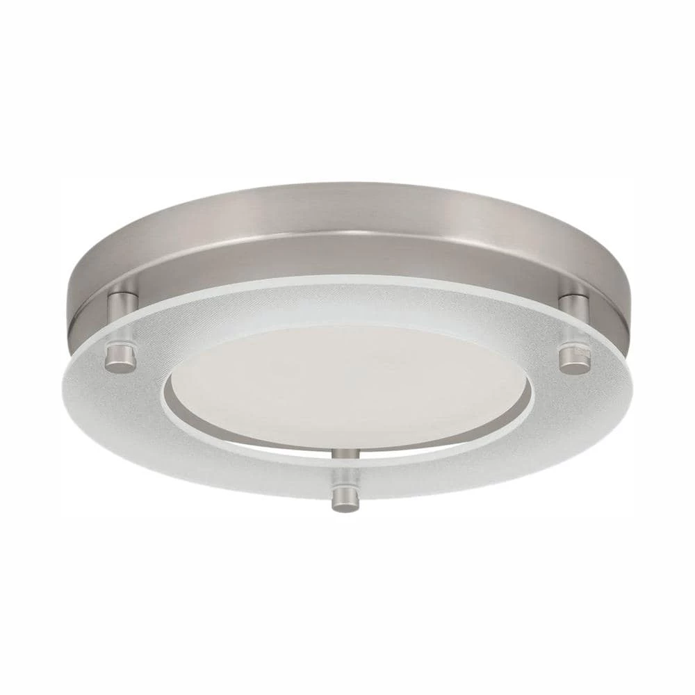 The all-in-one LED Surface Mount uses an intuitive snap-in system that allows easy flush mount installation to a junction box. 7-1/4 in. round with decorative glass ring. 3000K, 1050 lumens, 90+ CRI. Dimming with many TRIAC dimmers. Wet location listed.