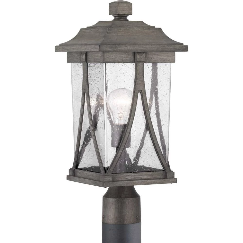 Distinctive forms with ancient roots are featured in this post lantern from the Abbott Collection. Transparency, depth and dimension are all on display to highlight the clear seeded glass and sweeping details within the Antique Pewter frame. Classic lines and sweeping details of the lantern design make it ideal for Traditional settings.