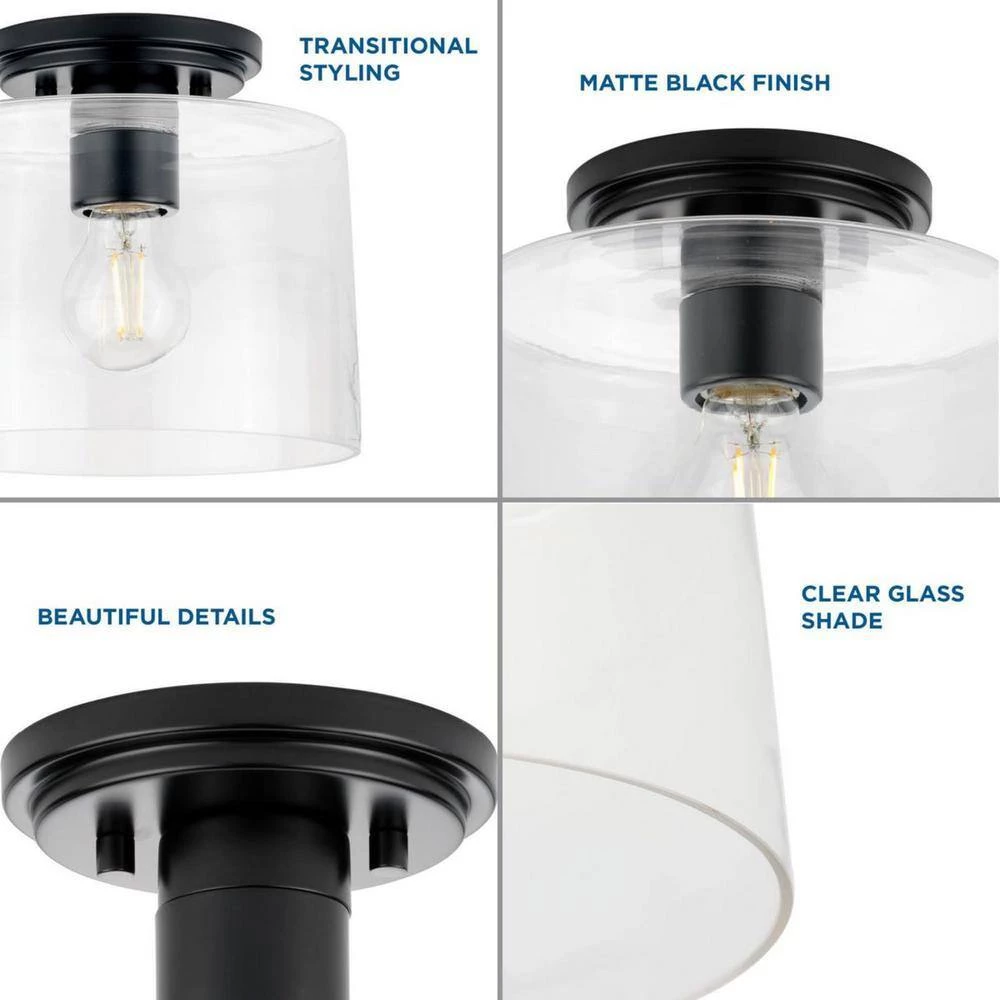 Feel revitalized with the soft glow of a flush mount from the Adley Collection. A sleek light base and circular ceiling plate are coated in a classic matte black finish. The light source is surrounded by a clear glass shade for gorgeous illumination. This ceiling light will find a home in any traditional or transitional style setting.