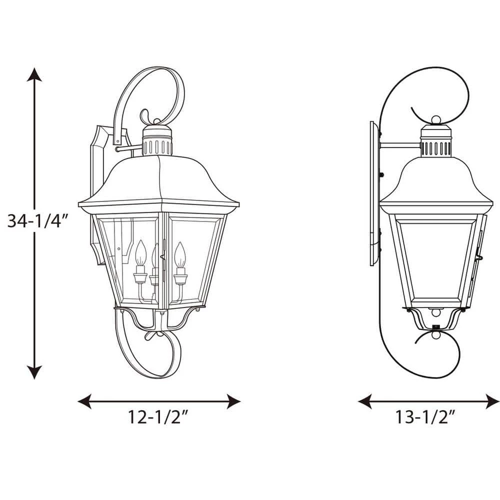 The Andover collection four-light extra-large wall lantern with aluminum construction, offers a mixture of traditional and country style for a variety of applications. Beveled glass panels allow optimum brightness. Hinged door for easy relamping.