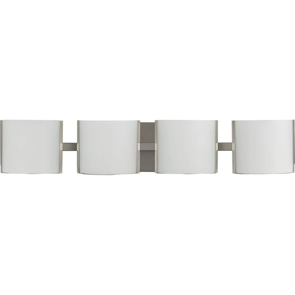 - Light fixture features a crisp opal glass diffuser with a modern silhouette