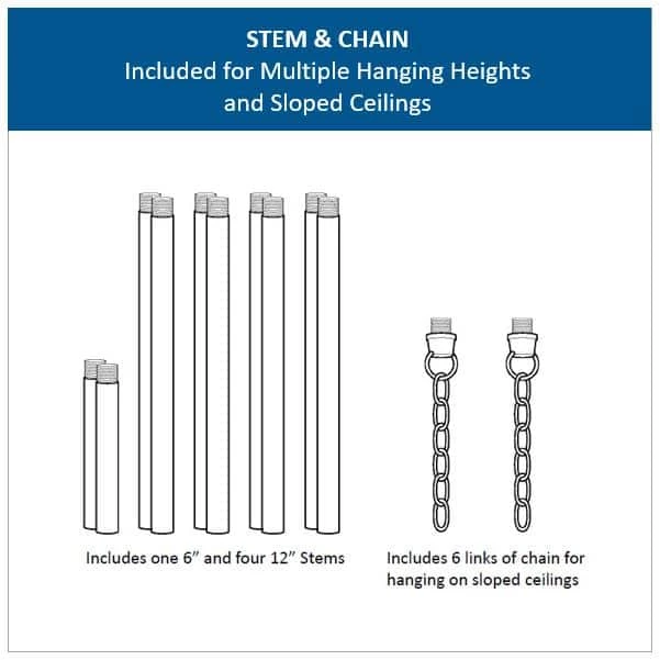 - Includes one 6 in., four 12 in. stems and 8 in. of chain