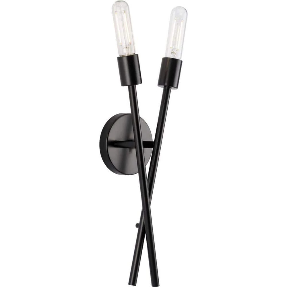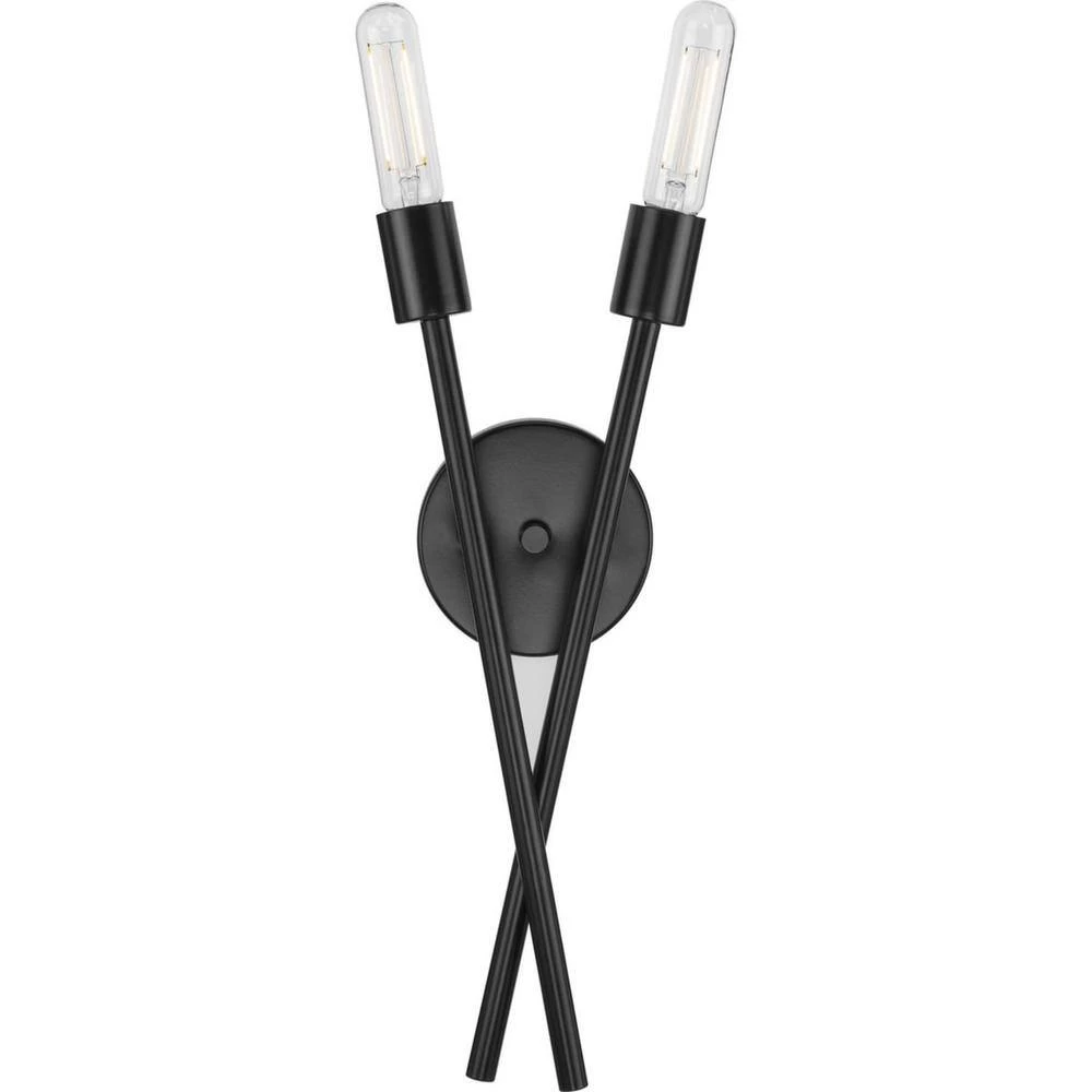 The Astra wall bracket features a space-age-inspired design perfect for modern and mid-century decor. A pair of elongated arms are held by a round backplate, bringing a dynamic flair to the fixture’s design. A crisp matte black finish adds a touch of sophistication. Decorative bulbs (sold separately) adorn the ends of each perpendicular arm. This versatile wall bracket is ideal for bringing illumination to dining rooms, kitchens and bedrooms. This fixture is part of the Progress Lighting Design Series, a lighting collection offering fashionable styles and affordable luxury lighting for the home.