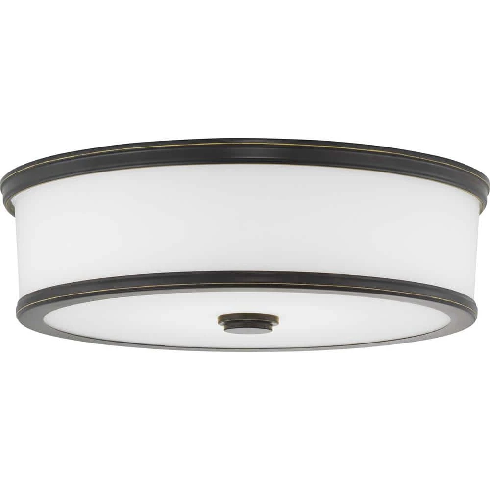 Featuring a sleek and slim appearance, the 16 in. flush mount from the Bezel LED Collection is an architectural flush mount. Etched white glass is accented by a metal trim in a Antique Bronze finish. The glass shade is illuminated on both the bottom and sides to provide a pleasing lighted effect.
