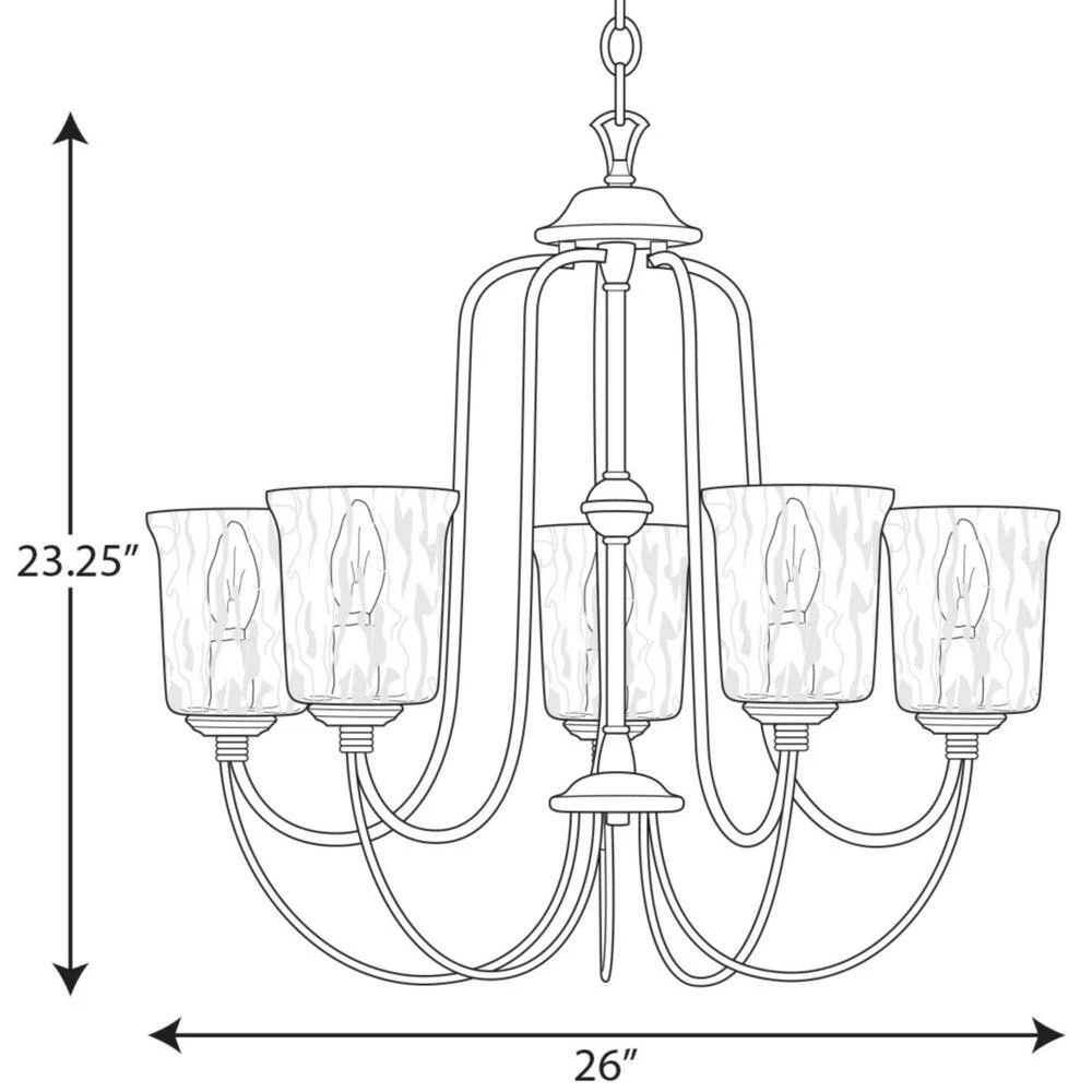 Beautiful lighting will appeal to both your classic taste and your artistic spirit with this chandelier. Wandering eyes will focus on clear, chiseled glass shades as they offer an air of refinery. Handsome light bases with dainty, sophisticated curved arms support elegant light bases. The frame is coated in a classic black finish to complete the versatile, eye-catching design.
