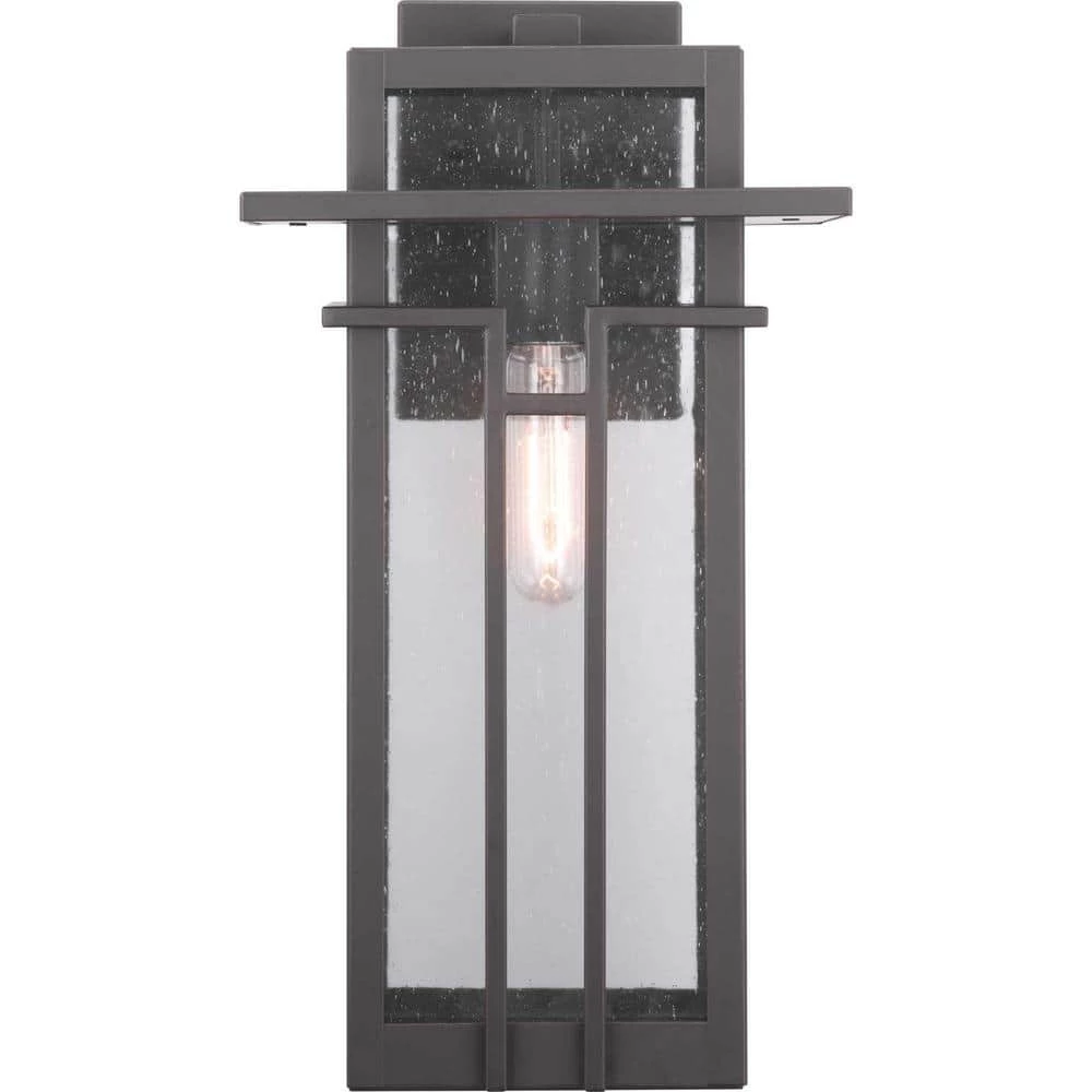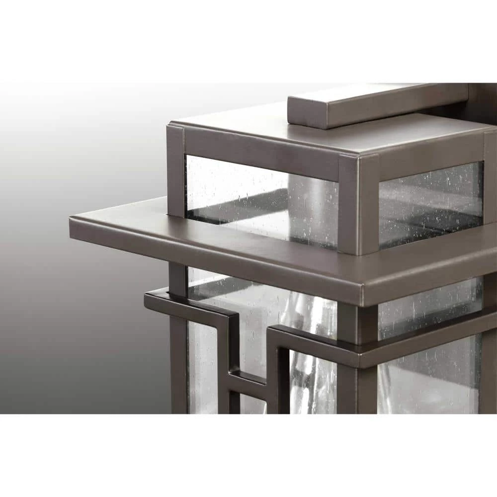Geometric details in Boxwoods design enhance Craftsman-inspired architecture. The 1-light large wall lantern features clear seeded glass and finished in Architectural Bronze which completes the authentic style. Ideal on either side of an entry door, flanking an outdoor fireplace or hanging on the walls of a covered outdoor living area.