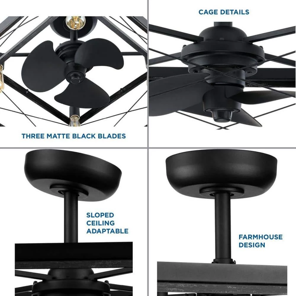 - Blades: 3 blades coated with a matte black finish rotate within the cerused black open-frame design that boasts a classic cross-brace pattern