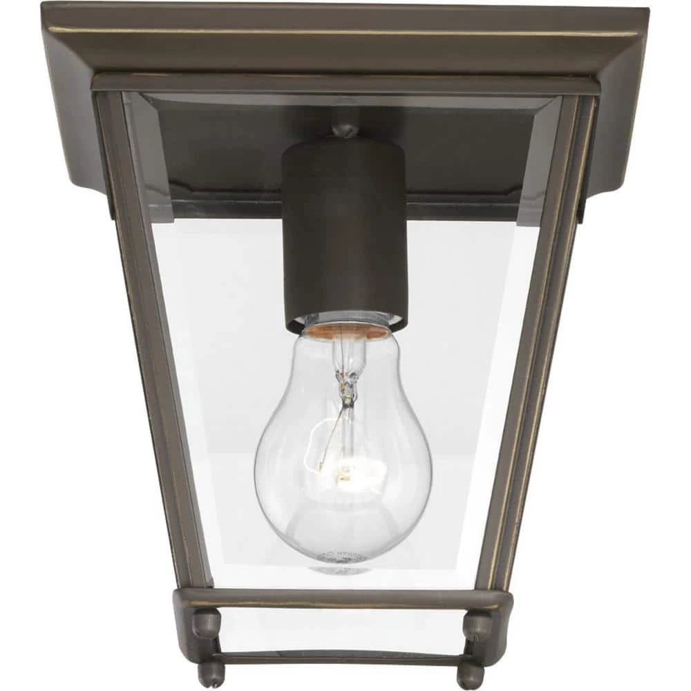 The Burlington collection flush mount fixture features an aluminum construction, weather-resistant performance with clear, beveled glass panels. Suitable for both indoor and outdoor applications, the open bottom design allows easy access to replace light bulbs. Ideal for Urban Industrial, Modern and Coastal exteriors.