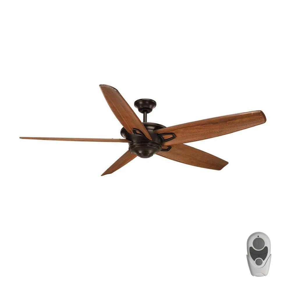 Beautiful and expansive in design, the 68 in. Caleb ceiling fan is ideal for use in large spaces. Bent Carved Wood blades are paired with either finished in an Antique Bronze finish. Caleb features a dual mount system and is compatible with universal light kits. A full function remote control with batteries is included.