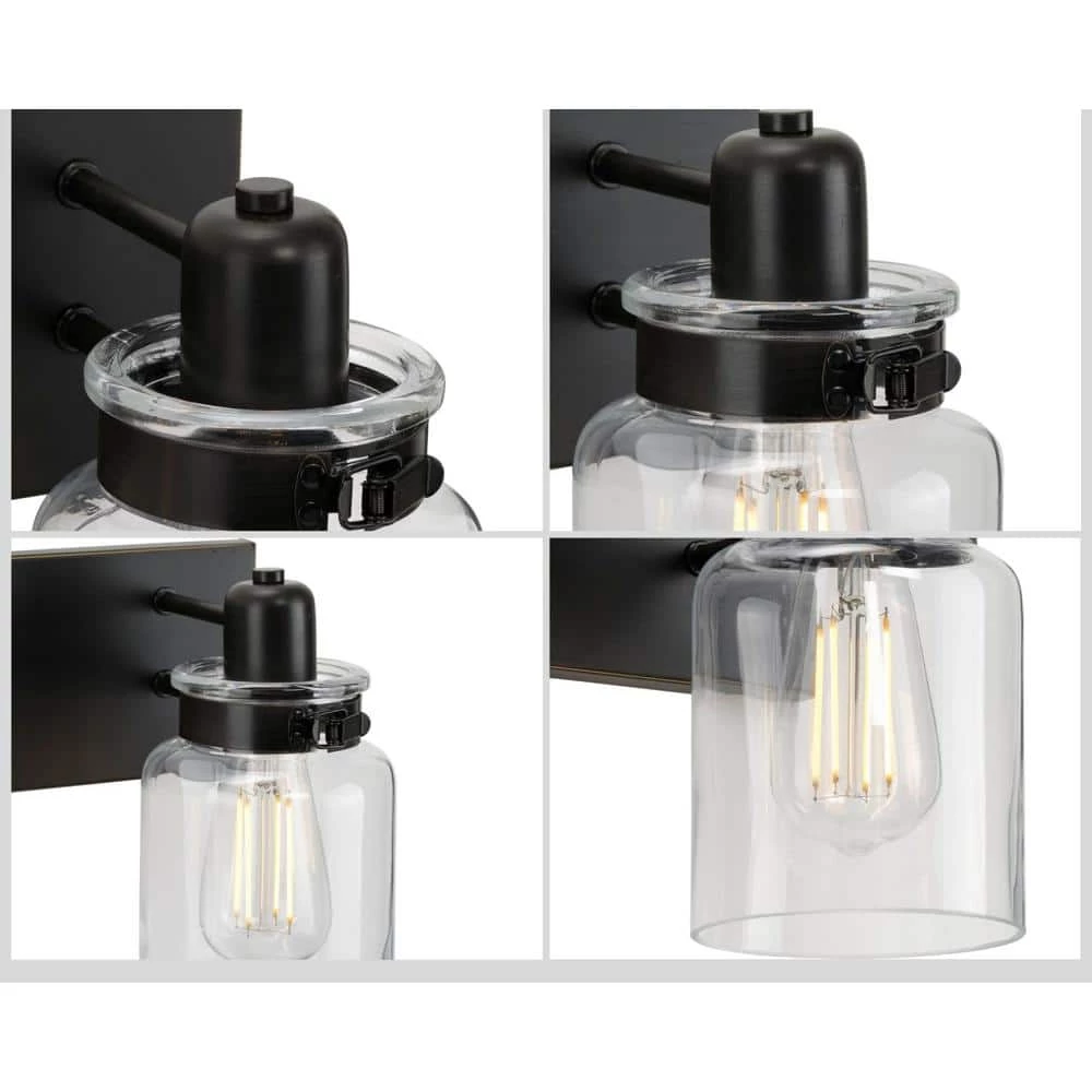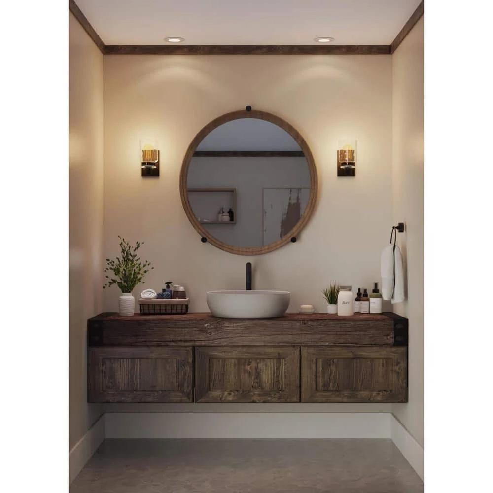 Manifest an atmosphere of positive energy and renewal by updating your bathroom decor with the vintage-inspired Calhoun collection’s one-light bath vanity bracket. Relish in the warm glow created by this one-of-a-kind fixture that boasts a living treasure of well-crafted features that feel both polished and personal. A stunning, thick glass shade with a classic, handmade appearance is held in place by a mechanical latch reminiscent of antique spice jars, creating a gaze-grabbing, apothecary vibe. A sleek, rectangular backplate covered in a beautiful antique bronze finish continues the classic attitude of the must-have design. Two round, polished arms extend from the backplate to hold the light source in its distinguished place. For ideal illumination, the bath bracket uses one medium base bulb that is sold separately (100w max – LED, CFL, Halogen, or incandescent). Incorporate a clear light bulb for a pinch of contemporary shine or opt for a vintage bulb to enhance the piece’s antique demeanor. With the capability to be fully dimmable with a dimmable bulb and having the approval to be installed in damp locations, the light fixture offers endless versatility when it comes to finding a place in your home decor vision. This statement lighting fixture is a must-have for illuminating any bath and vanity setting in mid-century modern, urban industrial, vintage electric, transitional, and farmhouse interiors.