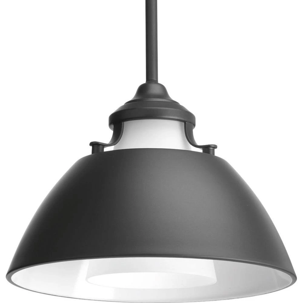 Light spills out onto a streamlined shade in the Carbon pendant and mini-pendant. Etched white glass diffuser allows the light to illuminate the metal shade. Graphite finish.