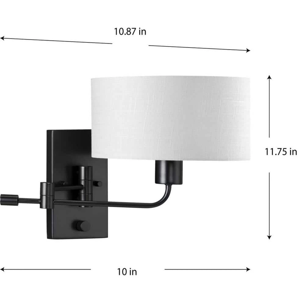 Merge function and fashion with the Carrick Collection. A full-range swing arm supports a crisp summer linen shade and etched glass diffuser for glare-free task illumination. An integral rotary switch on the backplate is included for convenient control. The wall light’s frame is coated in a classic matte black finish.