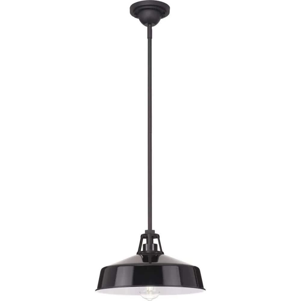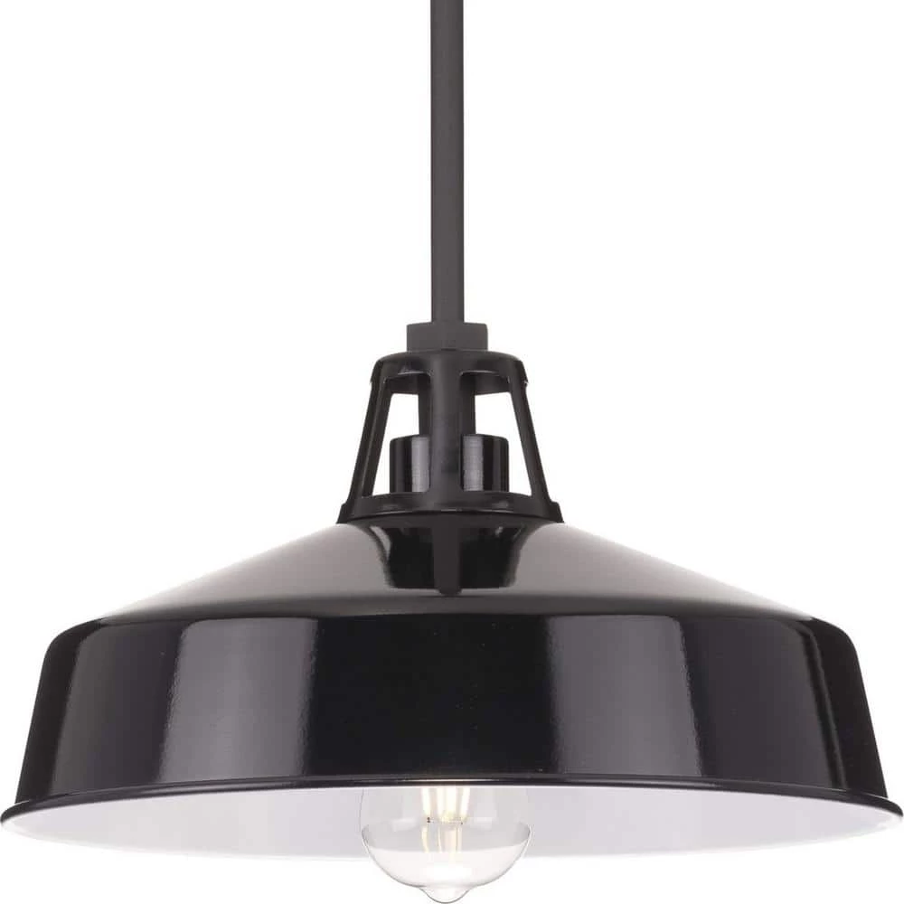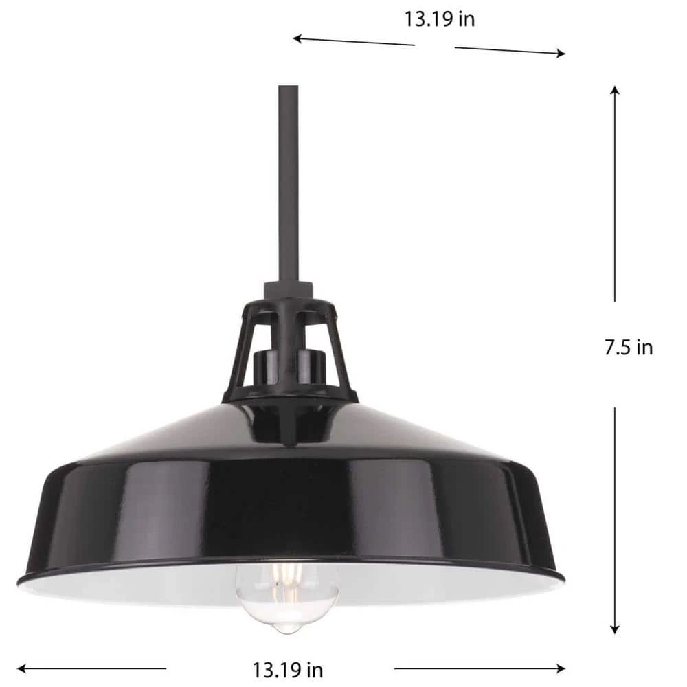 Enjoy a fun take on the traditional warehouse shade with a pendant light from the Cedar Springs Collection. The generous shade is coated in a gloss black finish with a white inside. A smooth black stem holds the ceiling light in place. This classic light fixture will upgrade any farmhouse or transitional style setting.