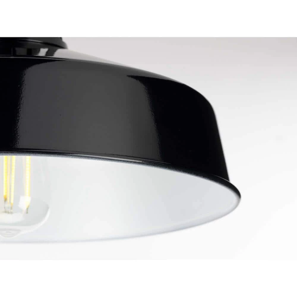 This fun take on the traditional warehouse shade provides excellent task lighting. Take in the simple metal shade coated in a gorgeous black finish ready to direct a helpful glow. An industrial-style ceiling plate anchors the light fixture in place and adds a touch of urban flair.