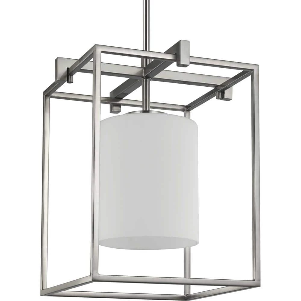 Stick with simple geometric forms and clean crisp lines with this modern mini-pendant. A beautiful opal glass shade visually calms the sharp edges of the boxy frame in a masterful stroke of design excellence. The frame is coated in a classic brushed nickel finish that contrasts the light shade. The light fixture is just right for spaces in need of a subtle, feminine touch.
