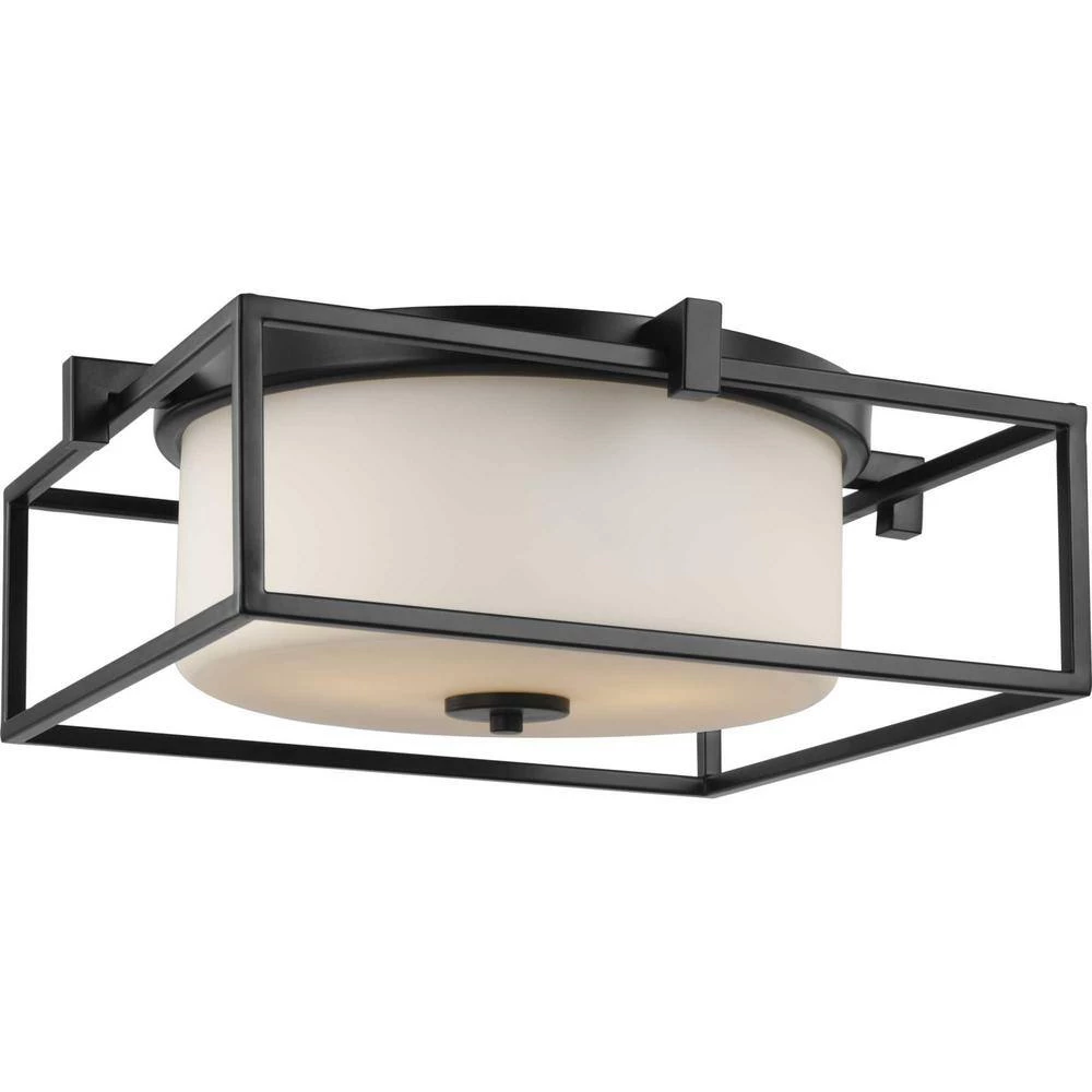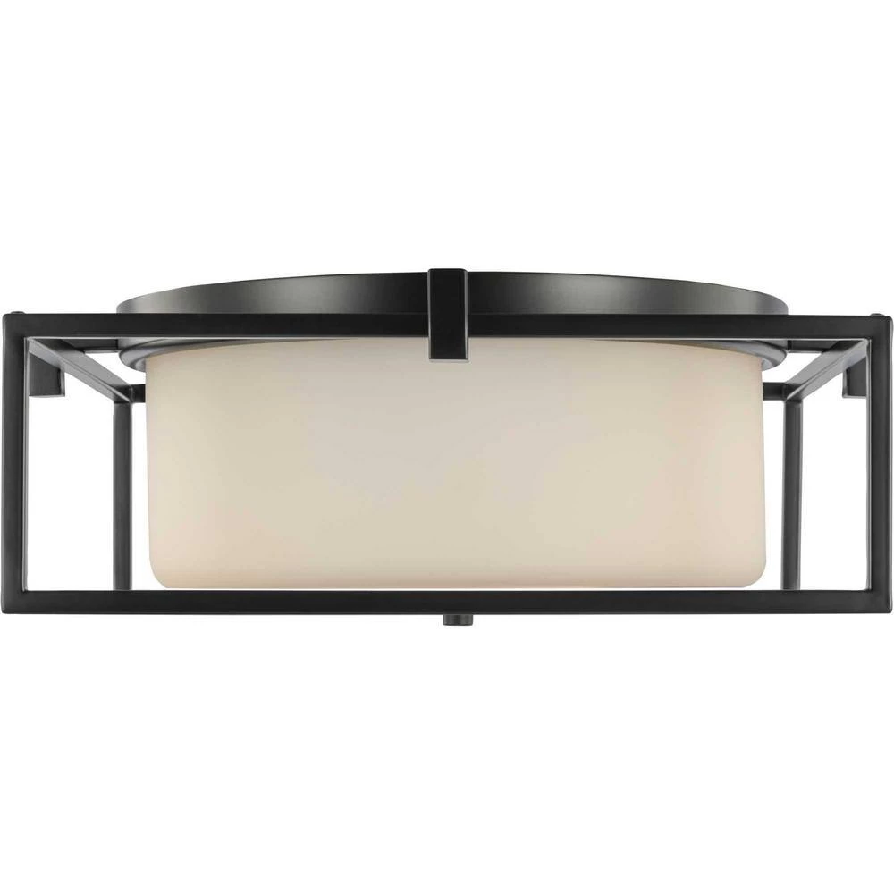 Stick with simple geometric forms and clean crisp lines with this modern flush mount. A beautiful opal glass shade visually calms the sharp edges of the boxy frame in a masterful stroke of design excellence. The frame is coated in a classic black finish that contrasts the light shade. The light fixture is just right for spaces in need of a subtle, feminine touch.
