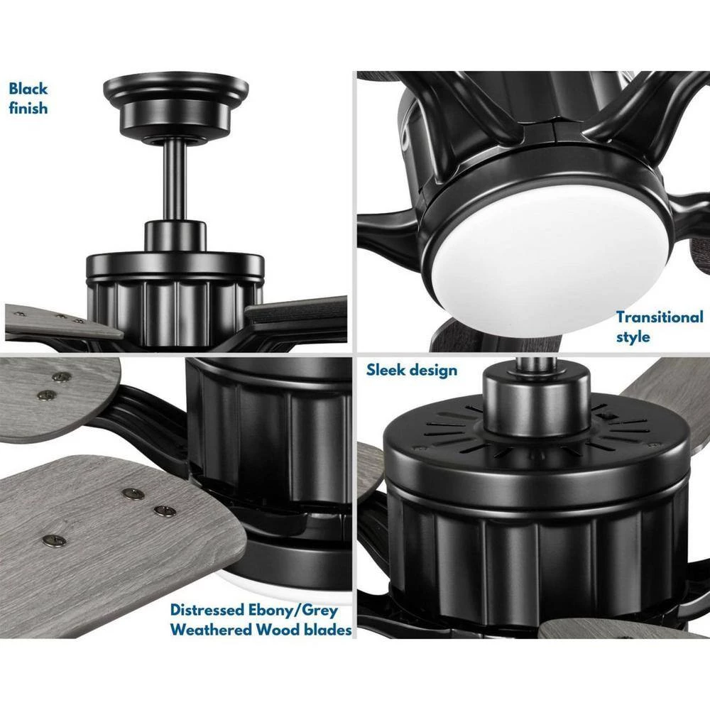 - Gracefully blend old and new with the Claret collection 5-blade reversible distressed ebony/grey weathered wood 56 in. AC motor LED transitional ceiling fan ideal for any living room