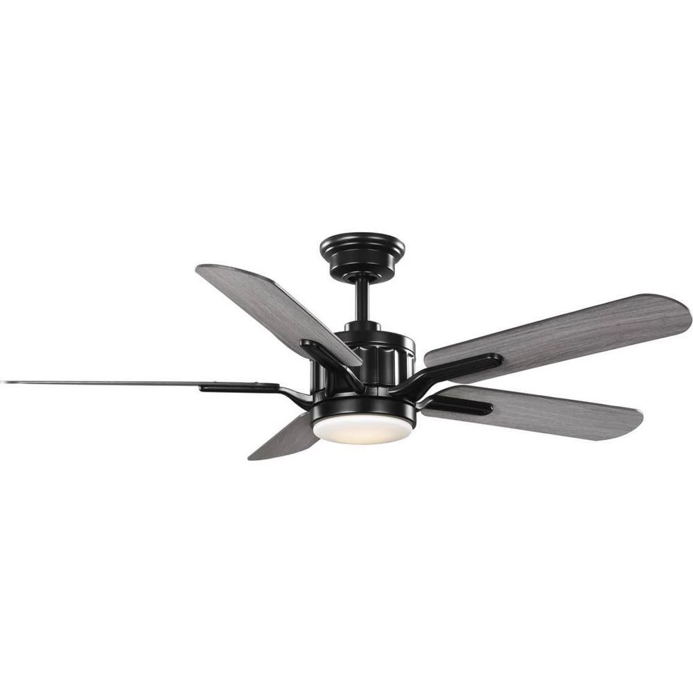 Gracefully blend the old with the new with the Claret Collection 5-Blade Reversible Matte Black/American Walnut 56 in. AC Motor Ceiling Fan. The canopy and fluted AC motor housing are coated in a beautiful black finish and are complemented by reversible distressed ebony and grey weathered wood blades. A 3-speed handheld remote with batteries and a wall bracket for storage are included so you can adjust full-range dimming and fan speed without breaking a sweat. for ideal illumination, an integrated LED source is included (18-Watt maximum/1,400 Lumens per LPW/120-Volt/90 CRI). Dimmable. The ceiling fan’s unique take on a classic design is ideal for any living room in transitional style settings. It’s time to breathe new life into the mundane every-day with timeless and truly transformative lighting. Make your purchase today to begin your journey to a whole new lighting experience. Progress Lighting products are designed for exceptional quality, reliability and functionality.