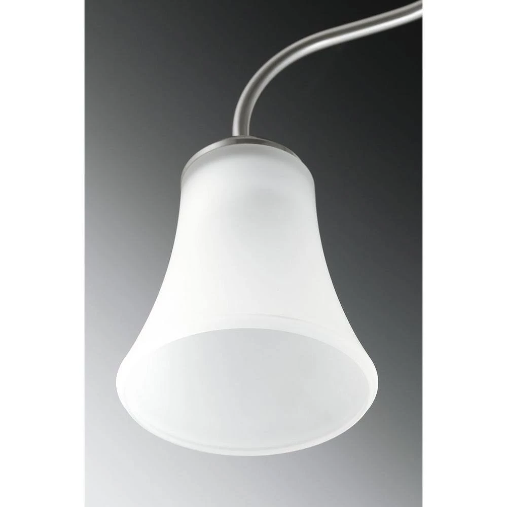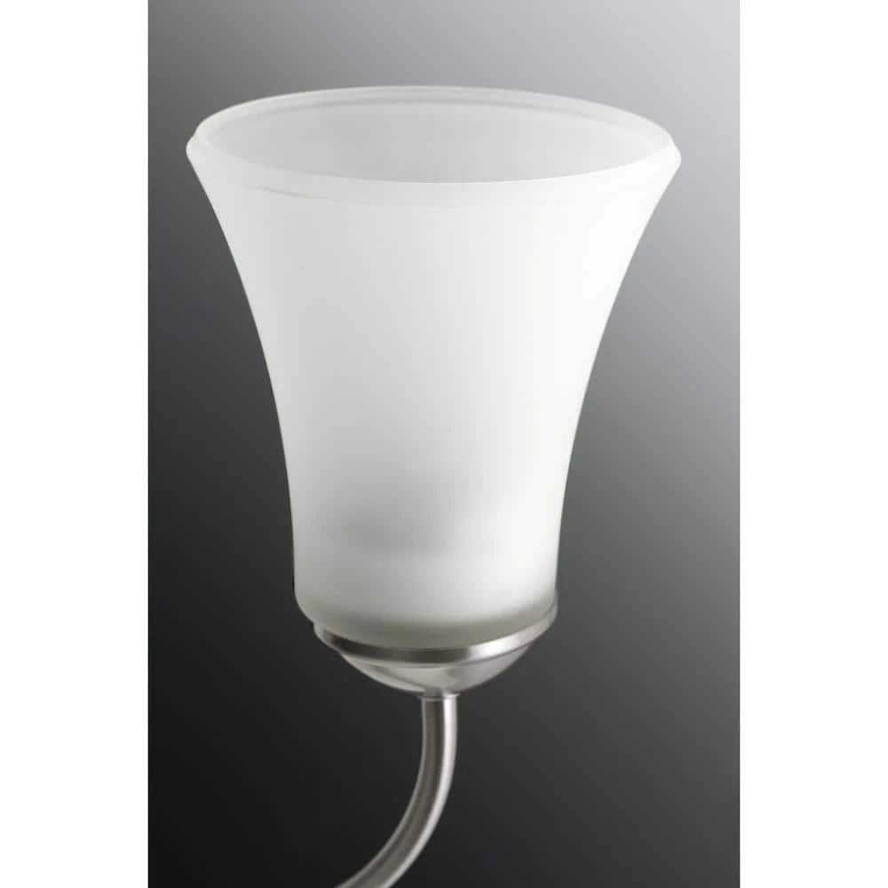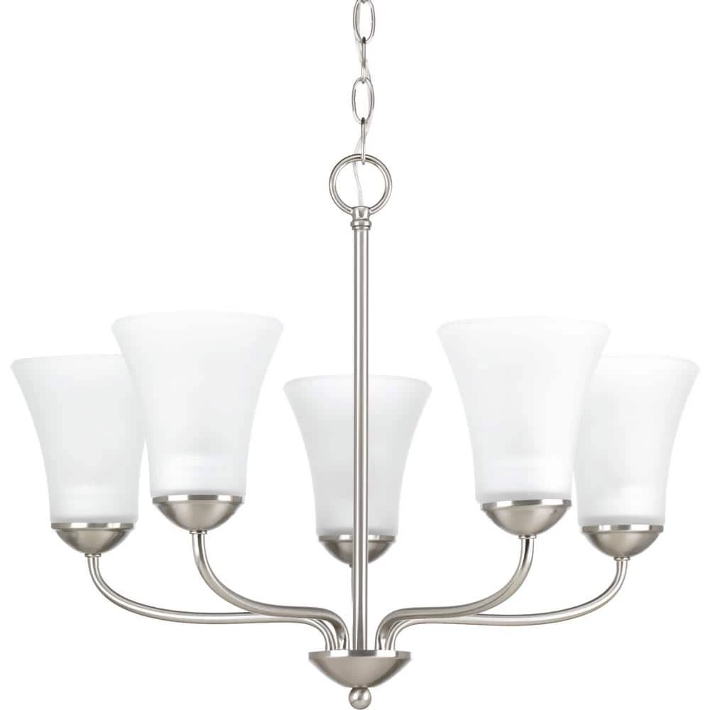 Traditional details and graceful lines provide modern elegance to any interior. The Classic 5-light chandelier features etched glass shades. Brushed Nickel finish.