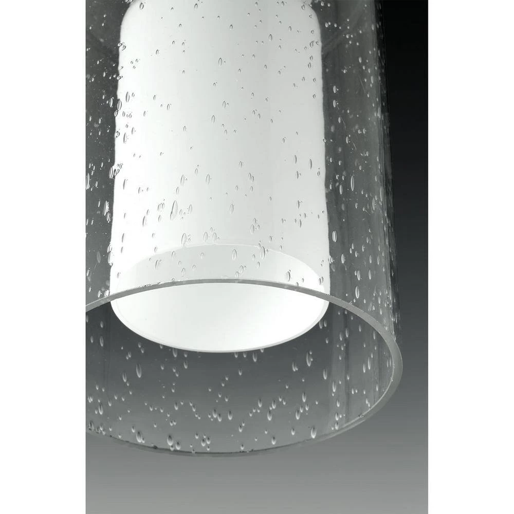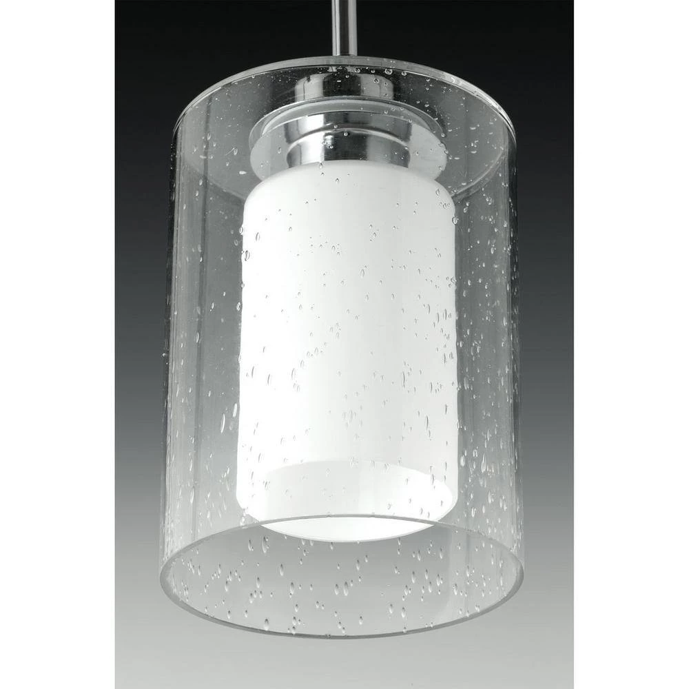 Create a focal point with the Double Glass pendant collection’s vintage-inspired silhouette. Oversized clear seeded outer glass with an inner etched white glass shade complements linear forms in a Graphite finish. Chrome LED version available with decorative diffuser is offered in a Brushed Nickel finish.