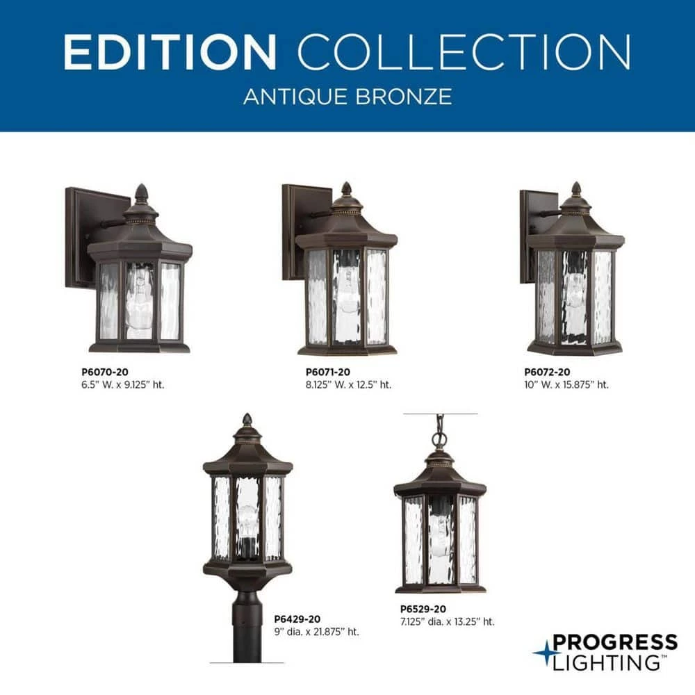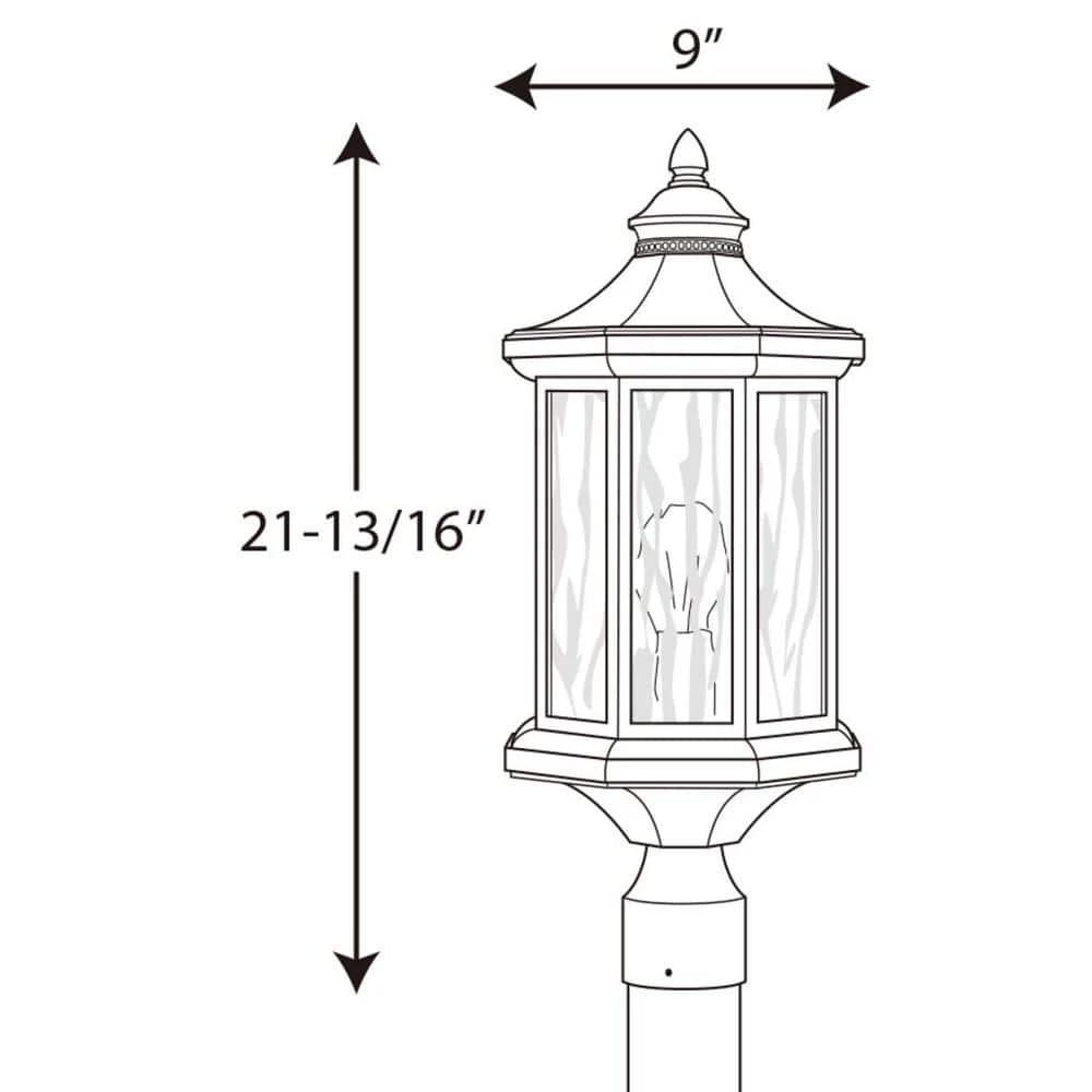 The 1-light post lantern in the Edition collection features distinctive hexagonal shape for classic styling. Clear water glass elements are accented by an Antique Bronze finish. Die-cast aluminum construction with a powder coat finish makes this a durable style for updating a home’s curb appeal. Fits 3 in. post.