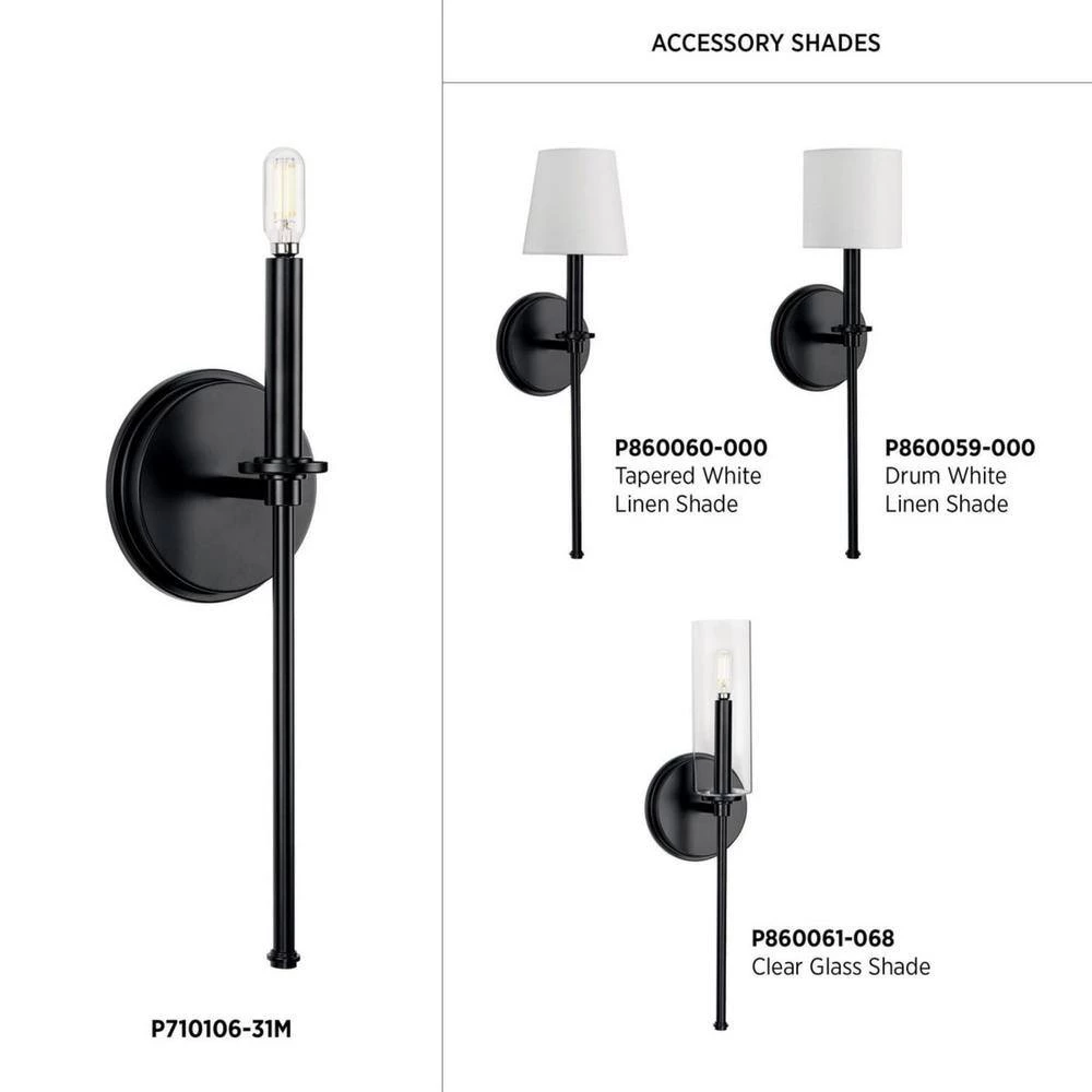 - For additional customization, Elara can be topped by a tapered (P860060-000) or drum (P860059-000) fabric shade or a clear glass cylinder (P860061-068)