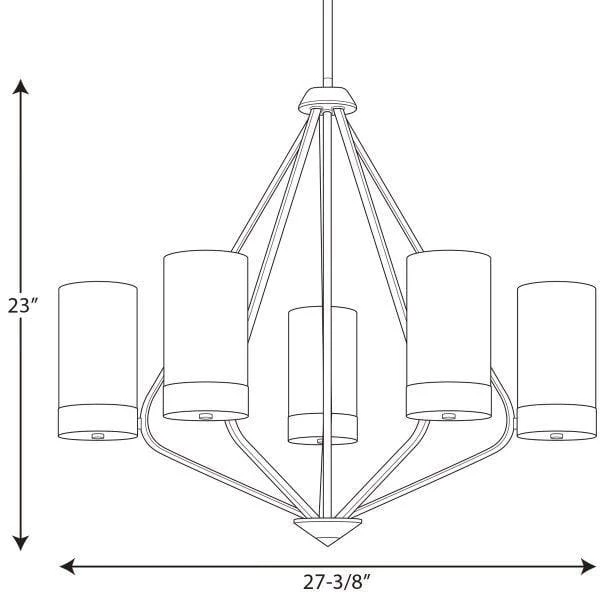Achieve a mid-century modern look with Elevate, which boasts glass shades and a frame inspired by Space Age styling. The trapezoidal form is accentuate in the Polished Chrome finish. This 5-light chandelier is part of our Design Series collections.