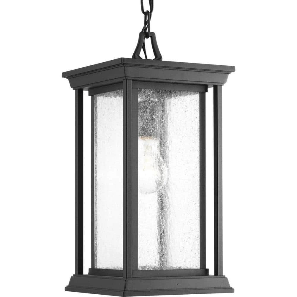 With a Craftsman-inspired silhouette, Endicott offers visual interest to your homes exterior. The elongated frame is finished with clear seeded glass. Black finish.
