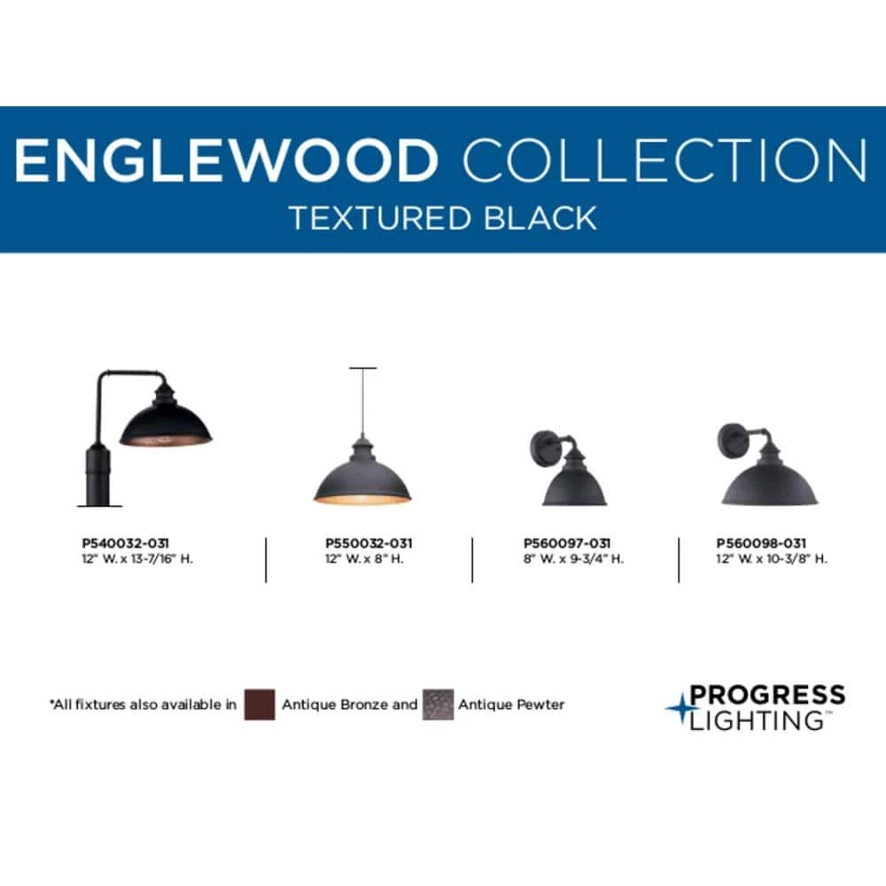 Inspired by the warmth and beauty of hammered copper home accents, Englewood’s design displays elements of rustic craftsmanship. A one-light medium wall lantern in Black with the inside of the shade that features a metallic copper coating of paint, offering higher illumination reflection. Ideal for Farmhouse architecture design styles. Perfect for interior or exterior applications.