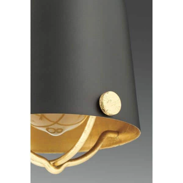 Eras carefully crafted details and special eclectic accents achieve a vintage electric feel. 1-light mini-pendant features gold leaf accents and a cloth covered cord. Satin Black finish.