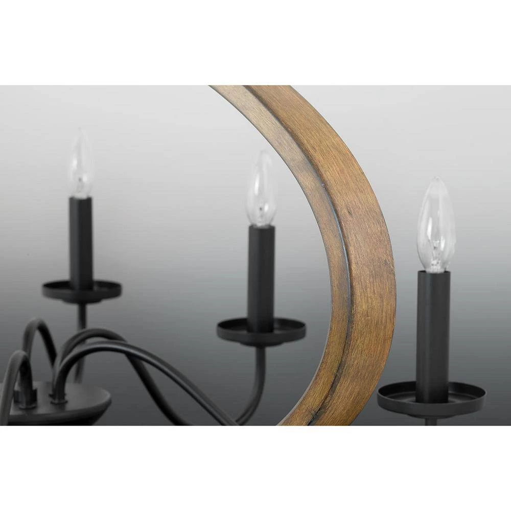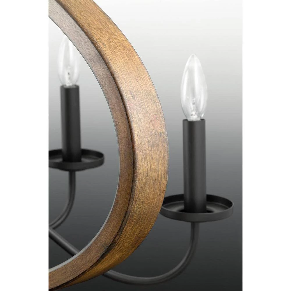 - Dramatic circular frame offers a stylish perch for graceful candelabra lights