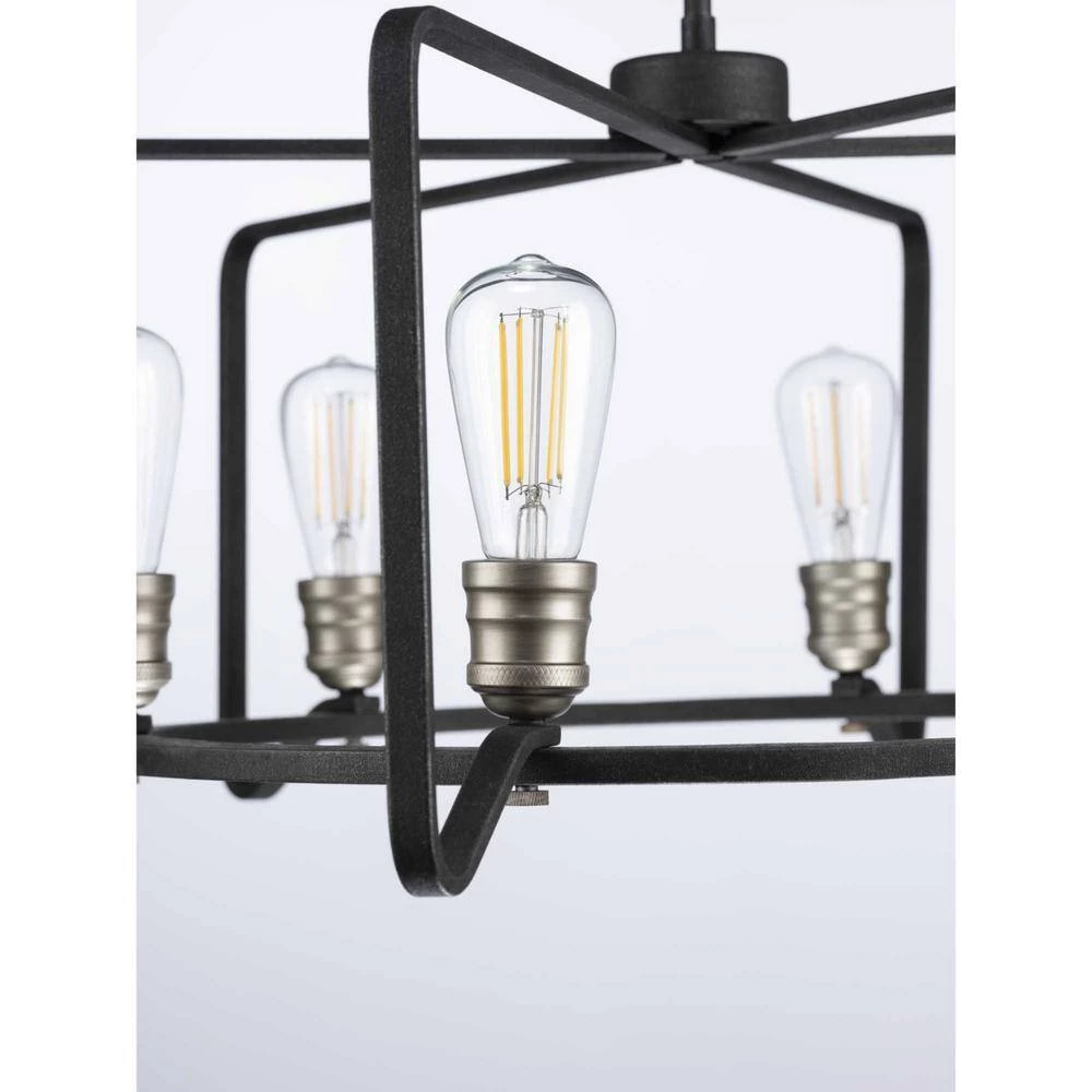- Exposed bulbs held by decorative sockets perch on the circular center frame, adding a vintage charm