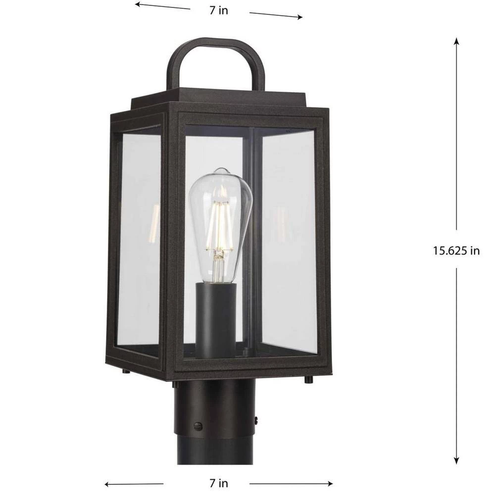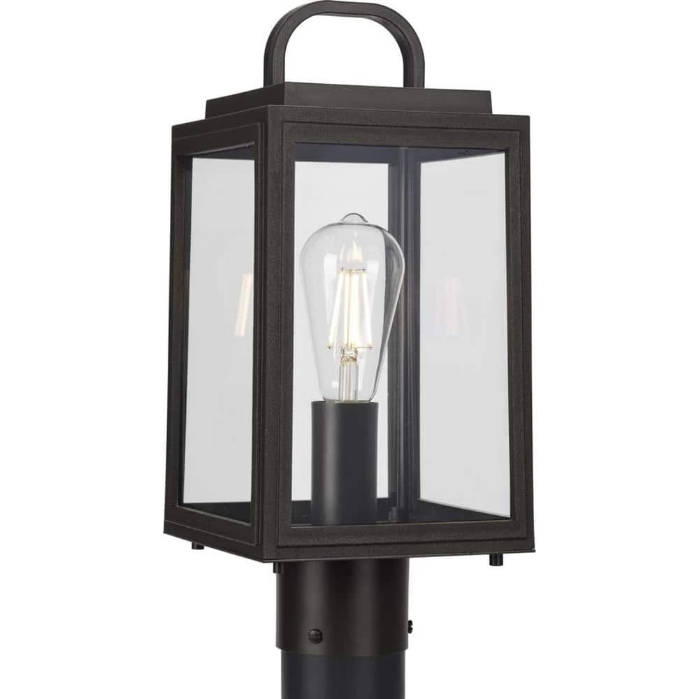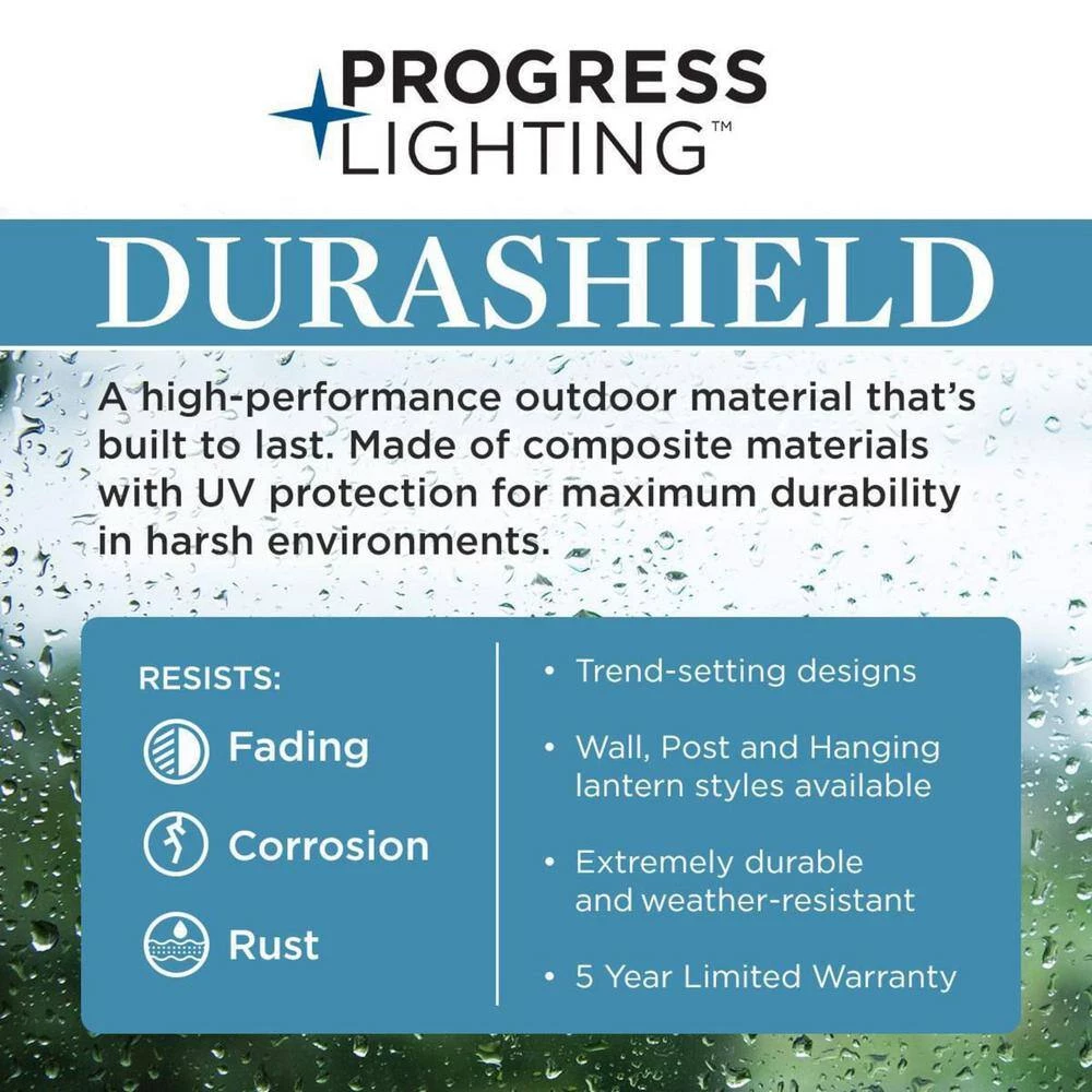 Partner timeless elegance with a pinch of coastal vibe with an outdoor post light from the Grandbury Collection. A beautiful square frame crafted from corrosion-proof composite polymer material features a half loop on top of the structure and is accented by crisp, clear glass panes. Made with DURASHIELD, a durable material specially designed and tested to resist harsh environmental conditions.