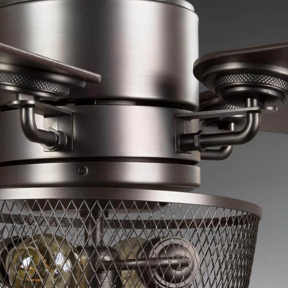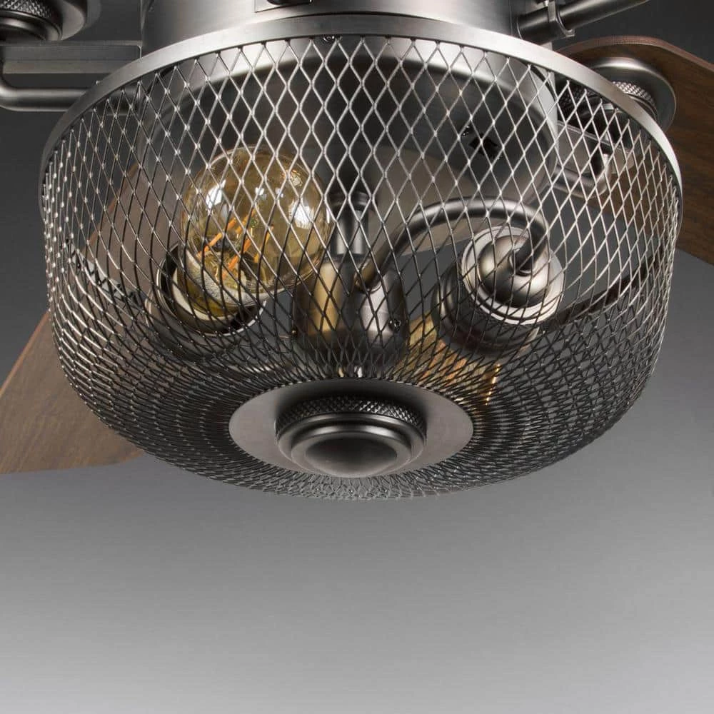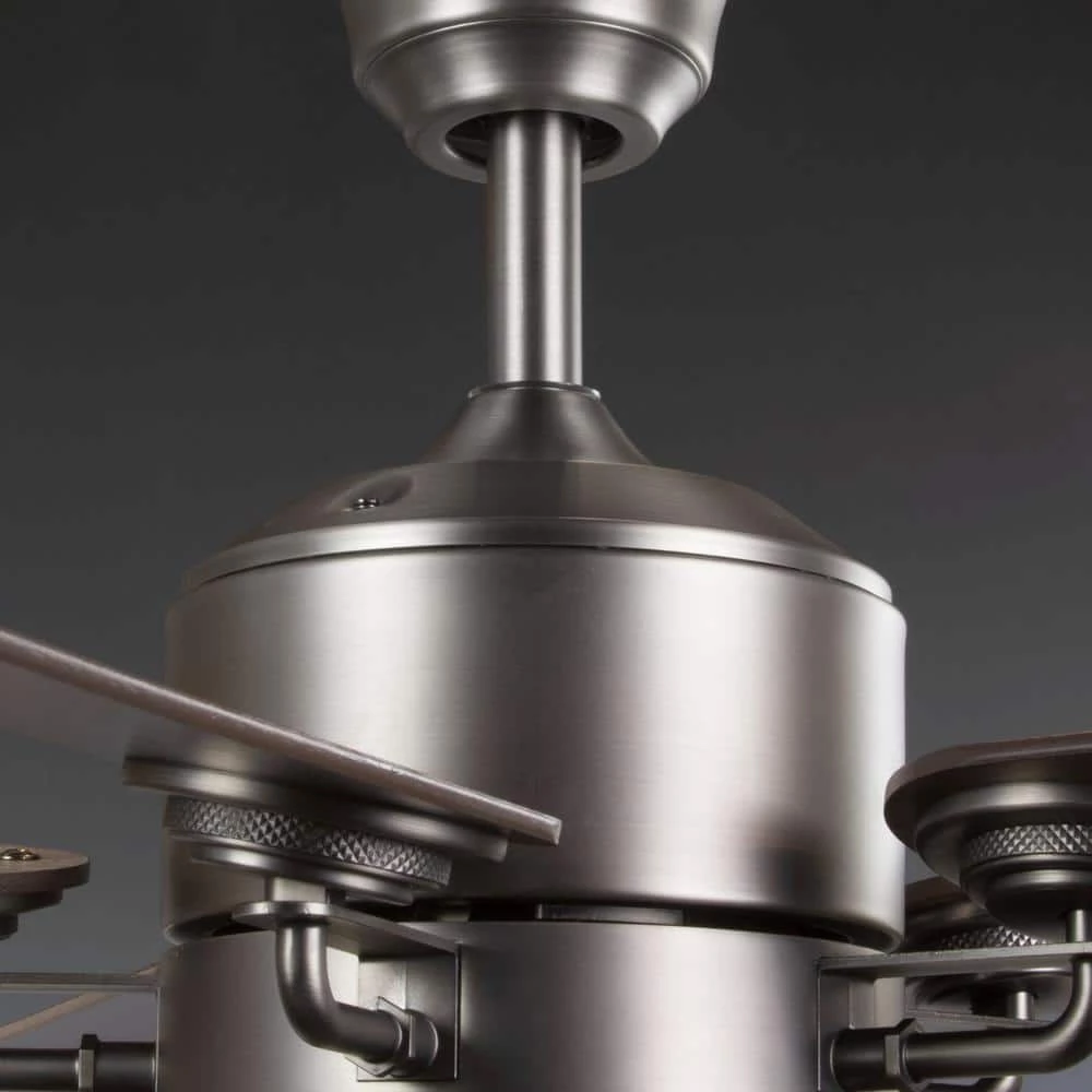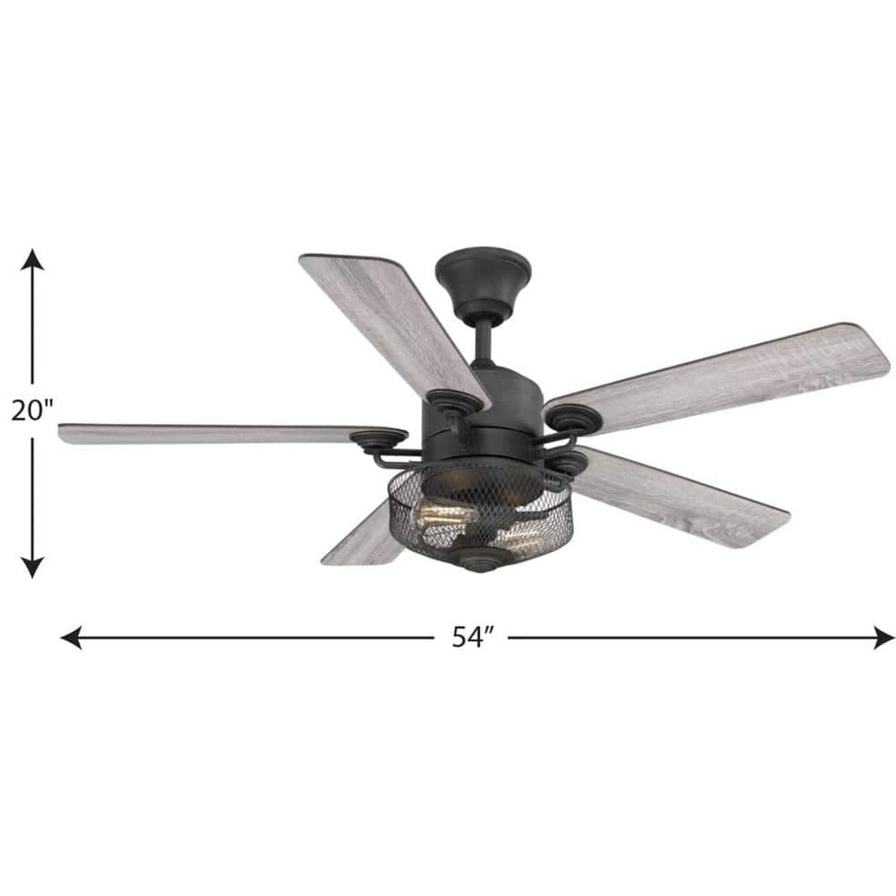 Upgrade your home decor while cooling down your favorite living space with the Greer Collection’s 54-Inch LED Five-Blade Ceiling Fan. The ceiling fan comes with a wire-mesh shade light kit that includes two vintage LED bulbs. The fan also includes full-range dimming abilities and a three-speed remote control with batteries included to customize air flow and illumination. The dual-mount center and motor is coated in a beautiful polished chrome finish. The fan’s reversible plywood blades are coated in a driftwood finish on one side and a walnut finish on the other to offer versatility when it comes to finding a place in your home decor vision. For optimal illumination, two vintage LED bulbs are included (6.5w max; 2200K). The ceiling fan is ideal for any great room, bedroom, living room, or bonus room in transitional settings. It’s time to breathe new life into the mundane every day with timeless and truly transformative lighting. Make your purchase today to begin your journey to a whole new lighting experience. Progress Lighting products are designed for exceptional quality, reliability, and functionality.