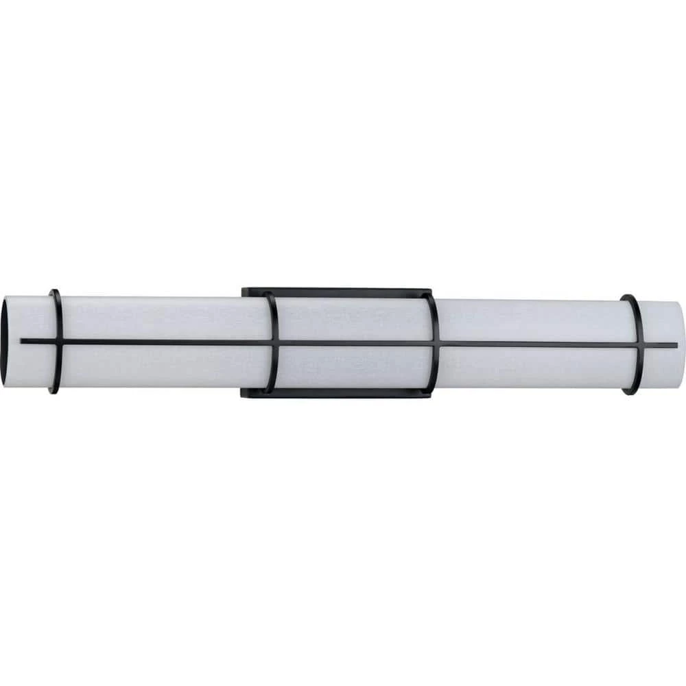 Blend a dramatic look and soft illumination with the Grid LED Collection 30 in. 1-Light Matte Black White Linen LED Modern Linear Bath Vanity Light. The geometric, open-cage frame is coated in a classic matte black finish. A light source glows from inside a cylindrical acrylic white etched linen diffuser for soft illumination. For ideal illumination, 1 integrated LED module is included (32-Watt), 3000k, 90CRI. 1033 delivered lumens Dimmable. The bath light’s sleek design is ideal for any entryway, hallway, foyer, bedroom, sitting room, living room or bathroom in contemporary and modern style settings. It’s time to breathe new life into the mundane every day with timeless and truly transformative lighting. Make your purchase today to begin your journey to a whole new lighting experience. Progress Lighting products are designed for exceptional quality, reliability and functionality.