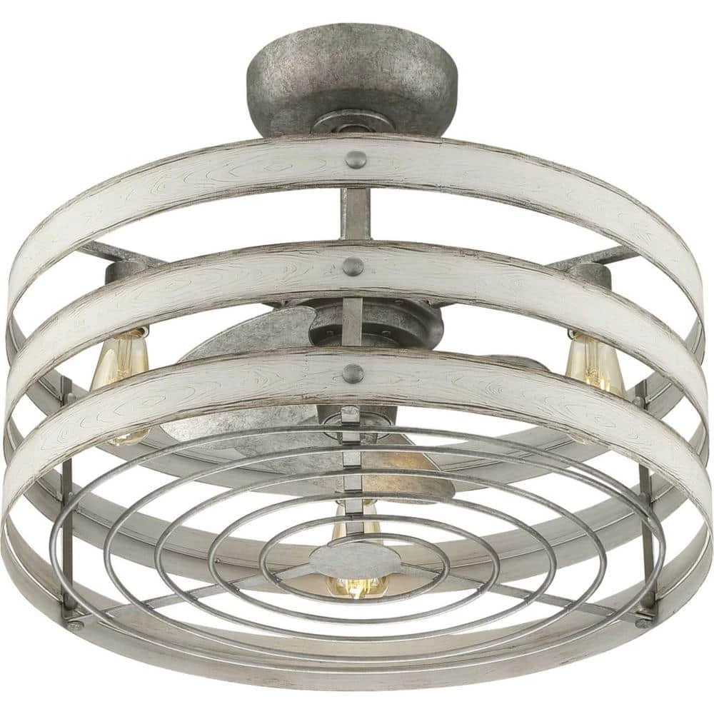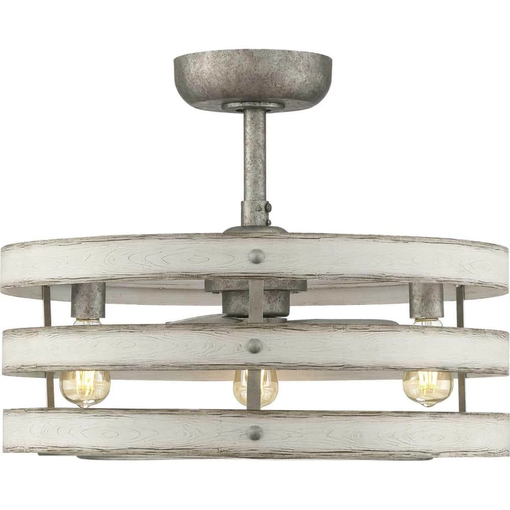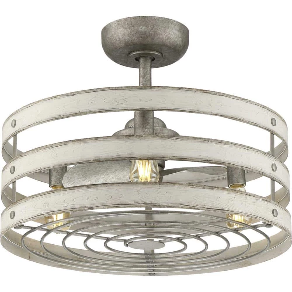 Simultaneously cool and illuminate your farmhouse or seaside home with the Gulliver ceiling fan. 3- Antique White Wood bands wrap together to create a rustic, open-cage design that offers style while generating a revitalizing, cool breeze. Bring a since of style to your home with the Gulliver ceiling fan.