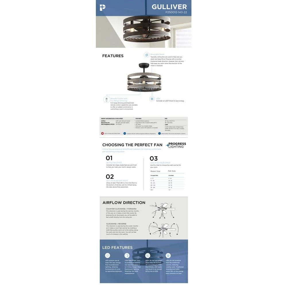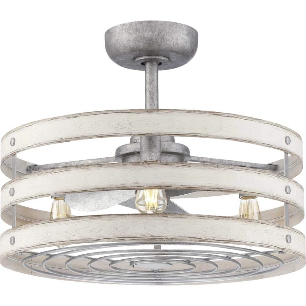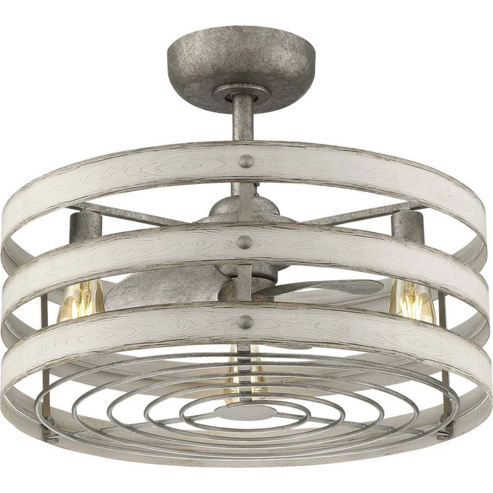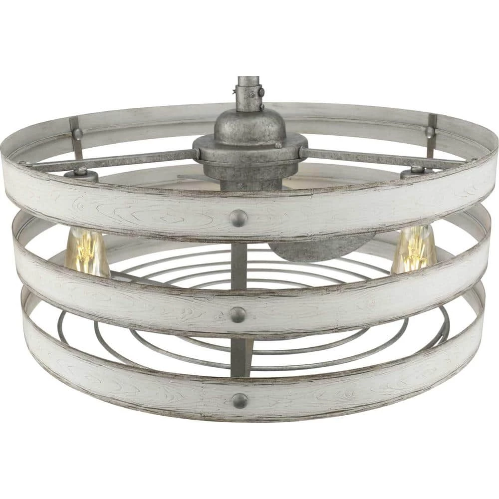 Simultaneously cool and illuminate your farmhouse or seaside home with the Gulliver ceiling fan. 3- Antique White Wood bands wrap together to create a rustic, open-cage design that offers style while generating a revitalizing, cool breeze. Bring a since of style to your home with the Gulliver ceiling fan.