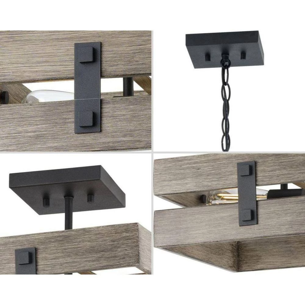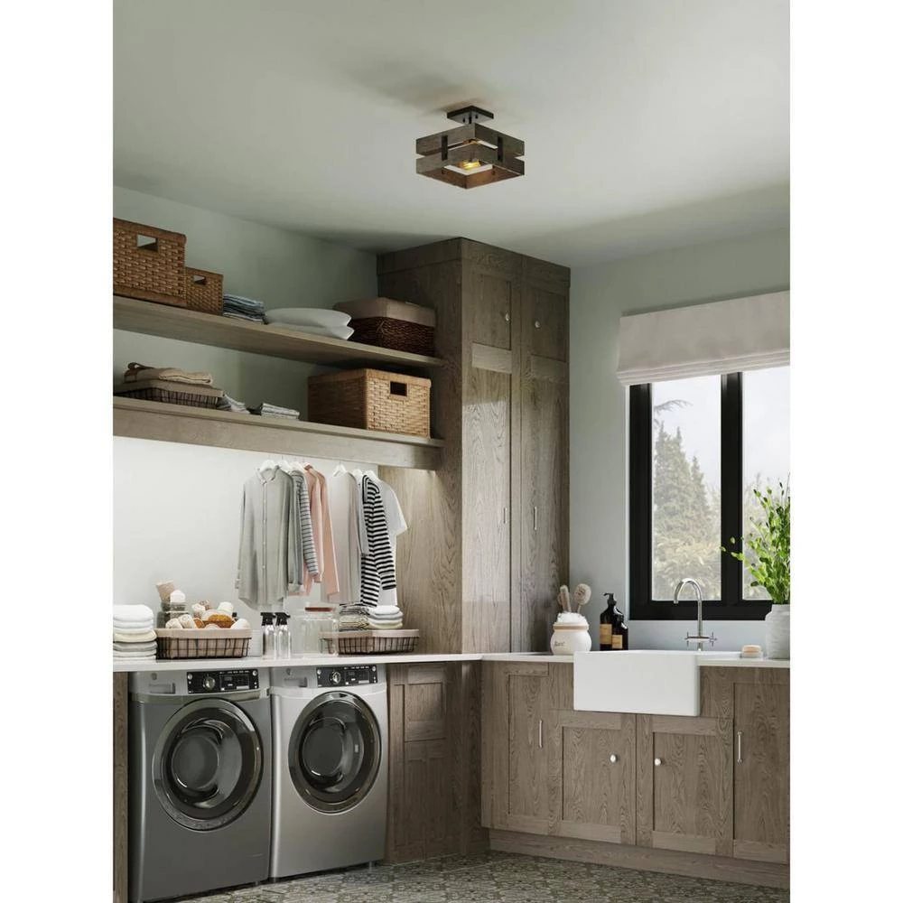 Create an extension of your personality and lifestyle with the rustic charm of this semi-flush mount. Country character is the cornerstone of this light fixture that features a crate-like frame composed of aged oak. Black barn-inspired metal details complete this must-have farmhouse design.