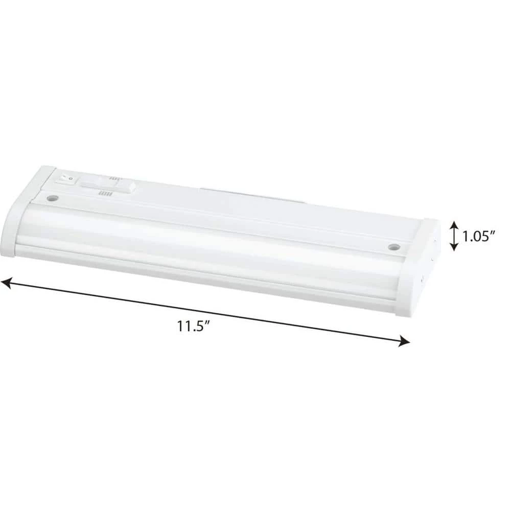 Combine elegant design with energy-efficient LED light in the Hide-A-Lite Collection 1-Light 12 in. Satin White Modern LED Linear Undercabinet Light. The fixture’s frame is coated in a crisp satin white finish. An access plate and quick connect wire connectors make installation easy. The fixture is directly wired. 2 armored cable fittings are included. The 5-CCT selectable LED light engine offers flexibility in application, allowing the choice of 5 different color temperatures allowing for the best lighting color to fulfill the design intent. An on-off switch on the front allows for easy task light illumination. For ideal illumination, 1 integrated LED is included (4.5-Watt). 2700K/3000K/3500K/4000K/5000K. 90CRI. 299 delivered lumens. Dimmable. The LED light’s sleek design is ideal for any bar, closet, garage, kitchen, laundry room, pantry, self-storage, storeroom, utility or workspace in residential or commercial applications in contemporary, modern, traditional and transitional style settings. It’s time to breathe new life into the mundane every day with timeless and truly transformative lighting. Make your purchase today to begin your journey to a whole new lighting experience. Progress Lighting products are designed for exceptional quality, reliability and functionality.