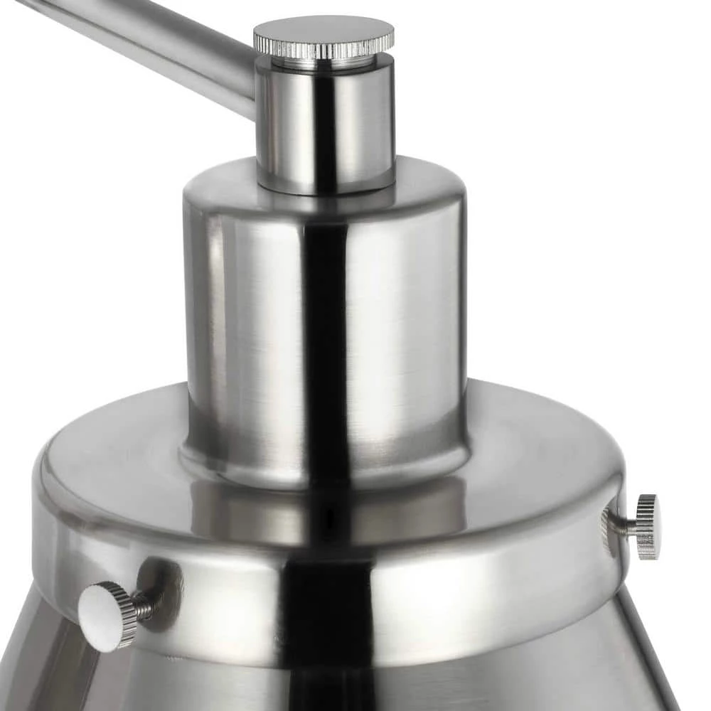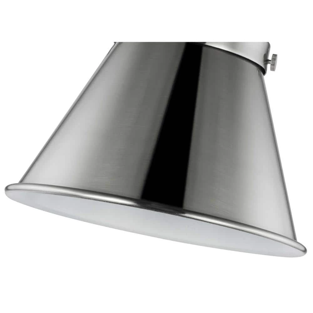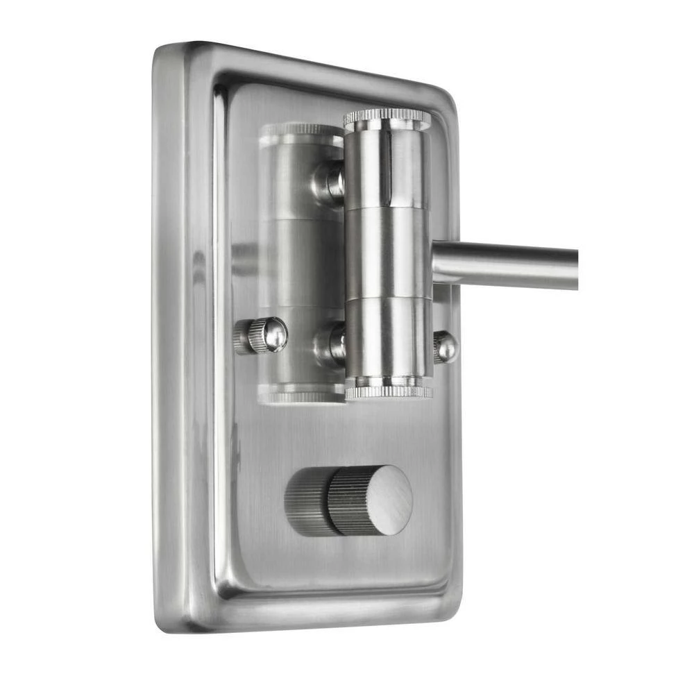 - Light fixture’s signature adjustable arm is coated in a brushed nickel finish and makes this wall light a favorite choice for when you want to read your favorite novel before bed