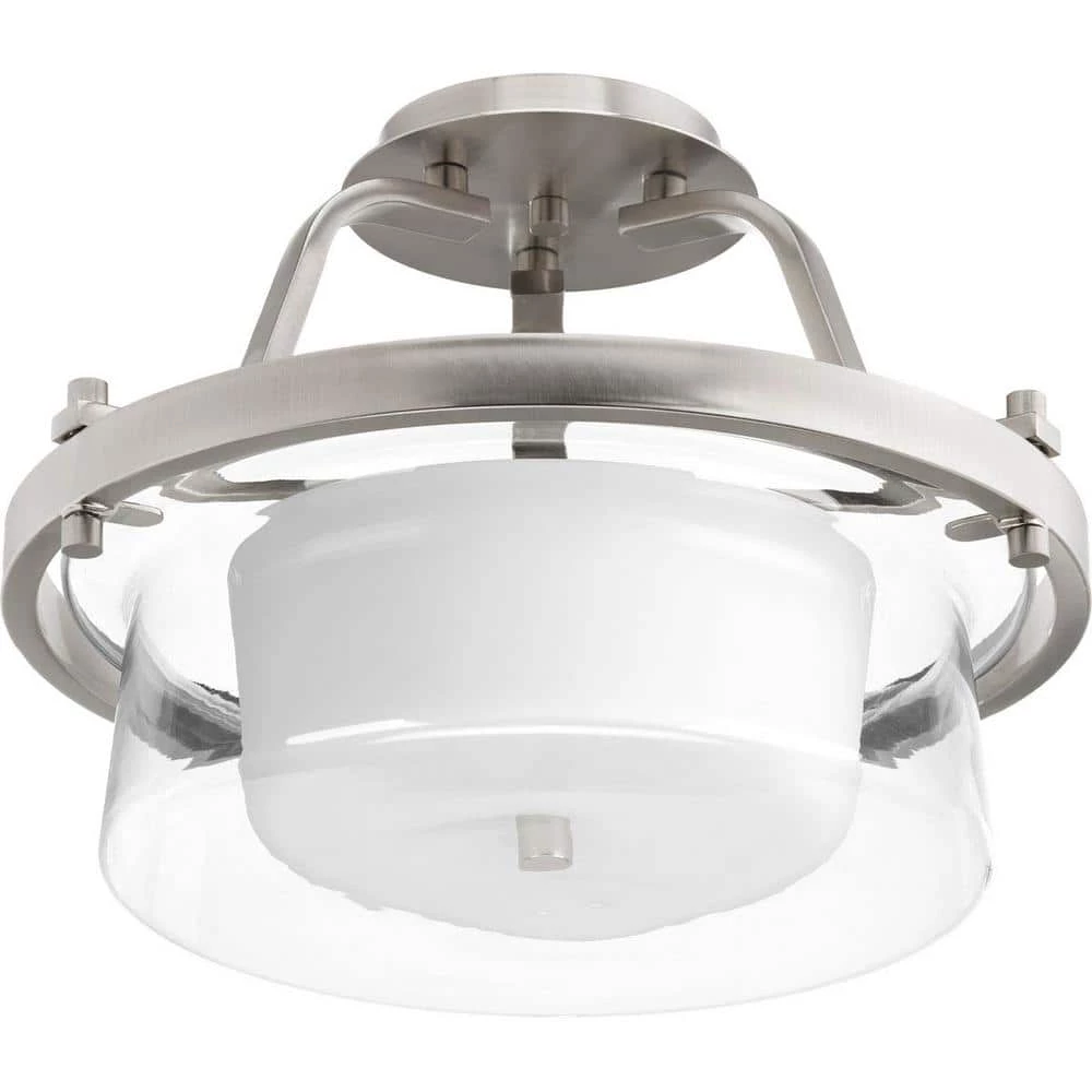 The Indulge collection provides you a decorating option to add both warmth and glamour to your home. Polished glass shades provide a gleaming surface that is softened by a uniform frosting on the glass interior for uniform, diffused illumination. Clear decorative accents add to the look while the brushed Nickel frame provides a distinctive silhouette.