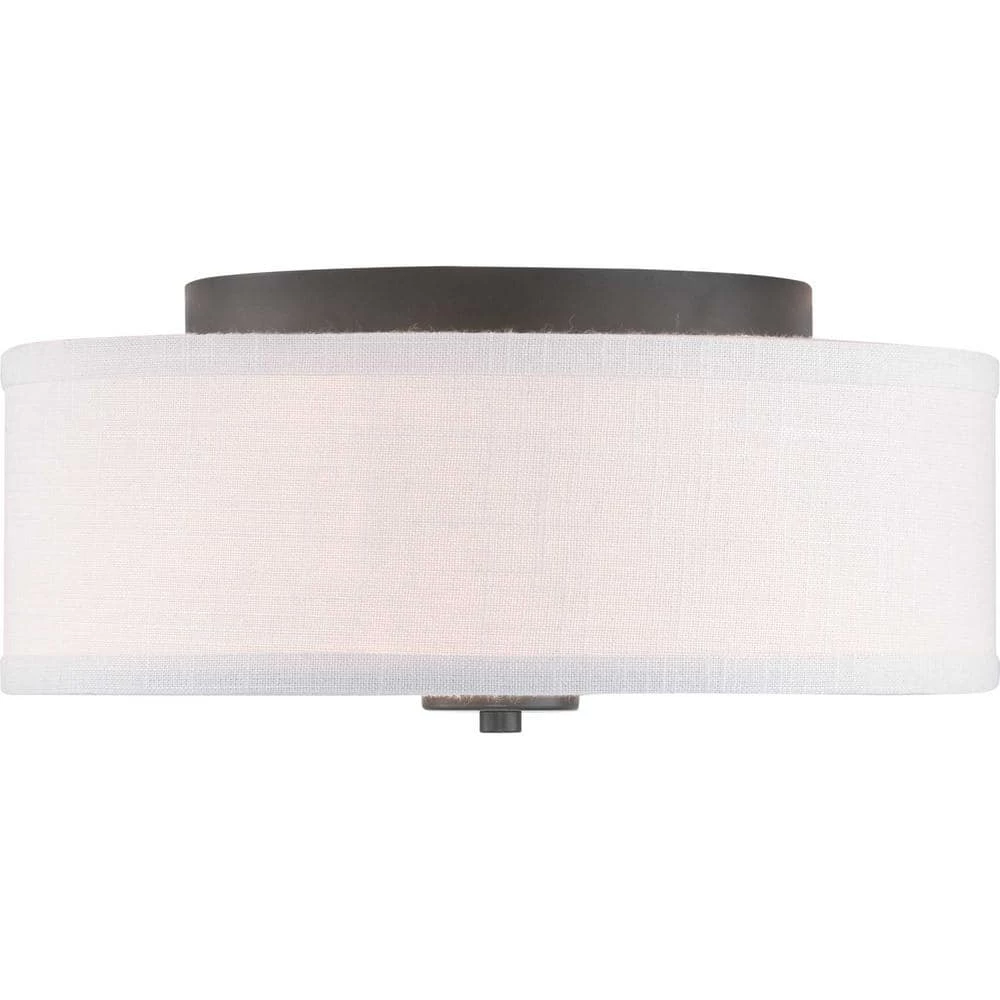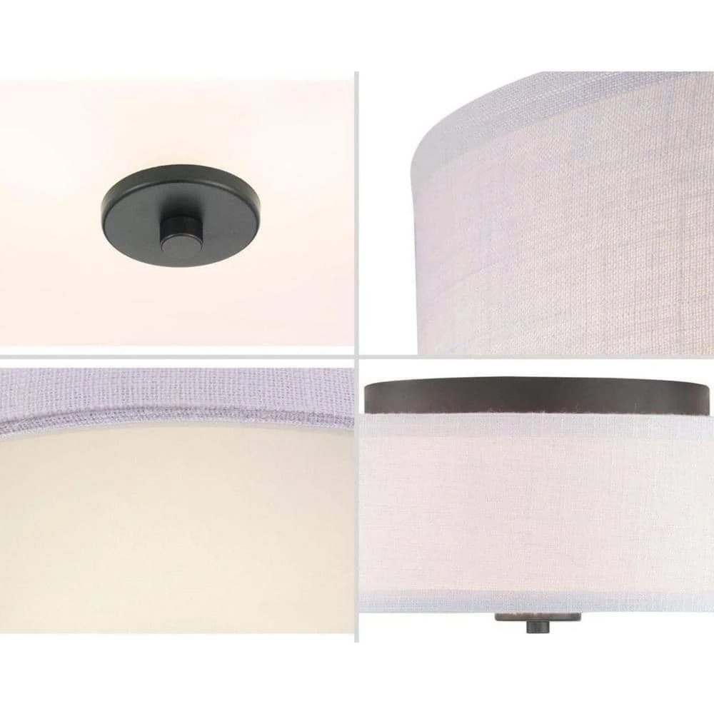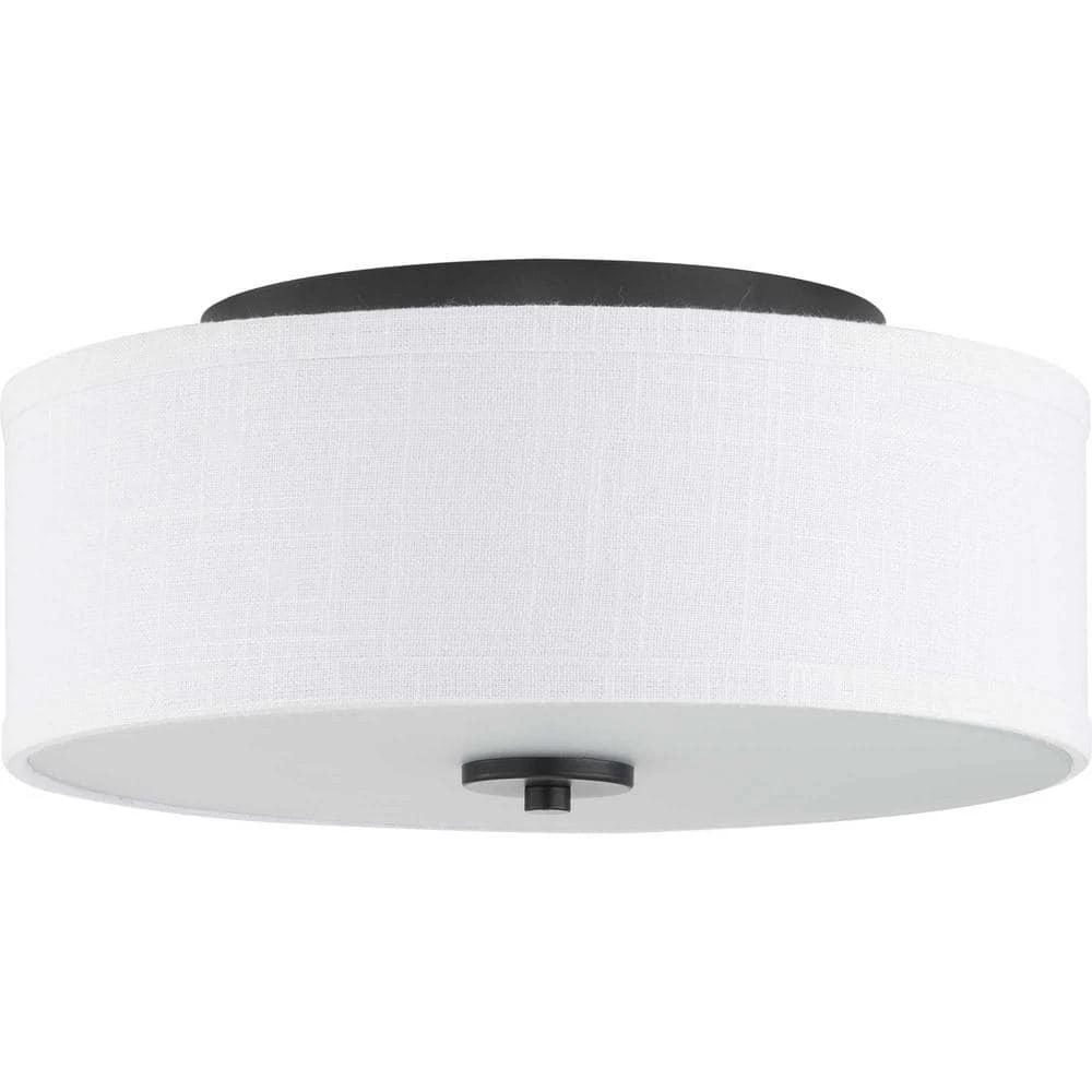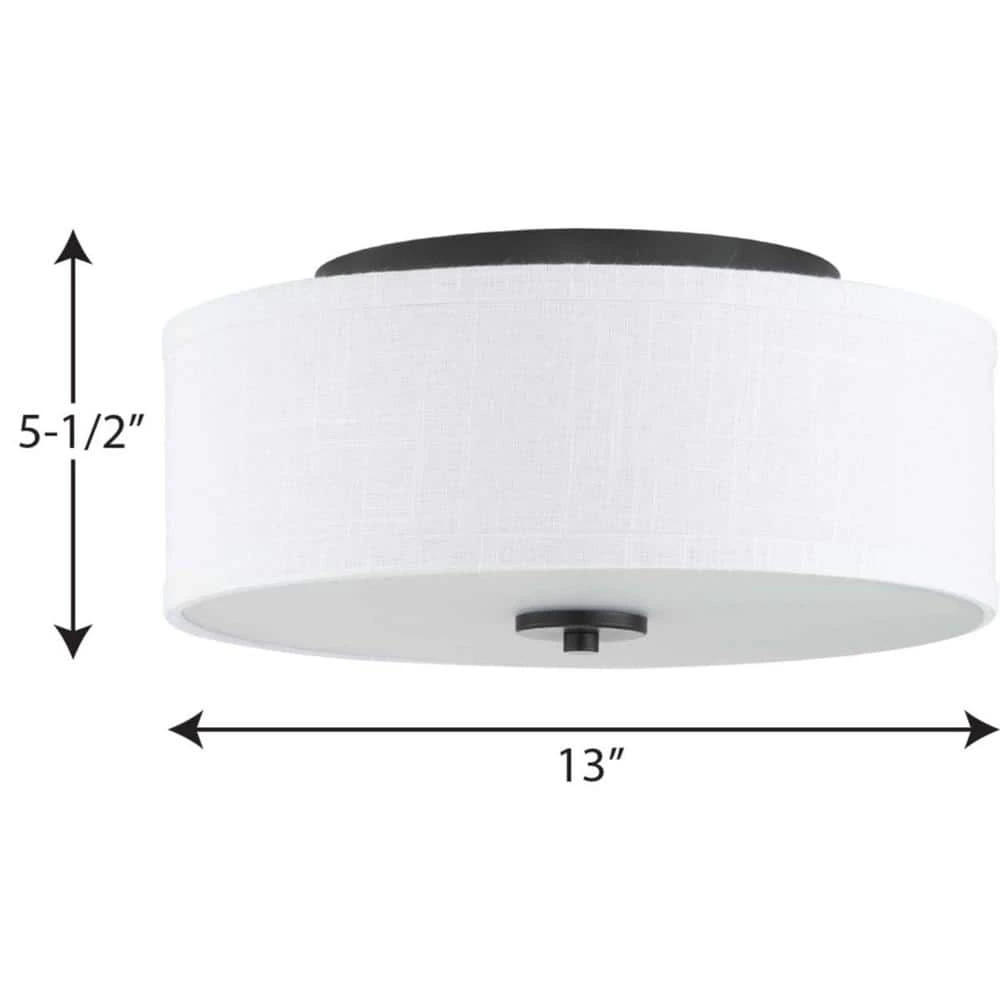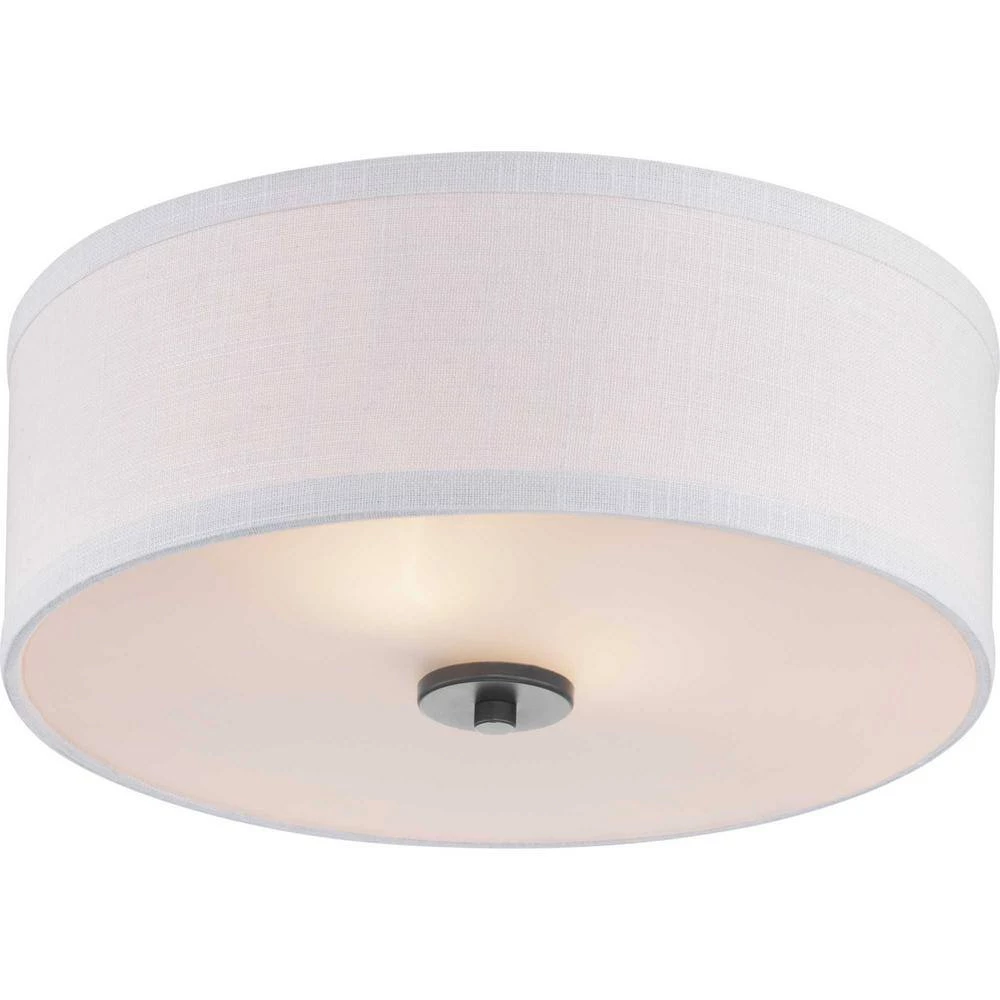 Harkening back to a simpler time, the Inspire Collection freshens traditional forms with flowing lines. The two-light flush mount fixture features an etched glass diffuser with a summer linen shade finished with Graphite details. This fixture is suitable for a variety of design styles, including Modern, Traditional and Farmhouse and the simple design is a perfect complement to a variety of fixture collections.