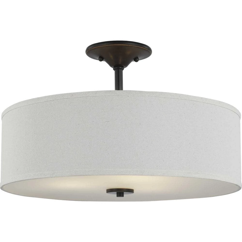 Harkening back to a simpler time, the Inspire Collection Antique Bronze 3-Light Semi-Flush Mount’s timeless demeanor is sure to become a favorite for generations. A round, off-white linen shade with an etched glass diffuser steals the show and creates a beautiful muted glow. Understated metal accents complement the light fixture as it fosters a casual, friendly atmosphere.